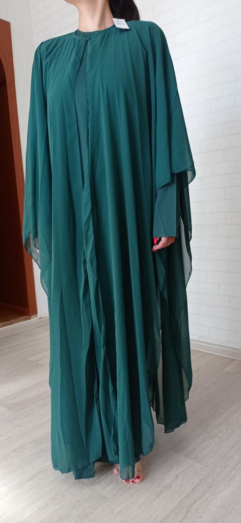 I ordered a size larger, excellent, comfortable, I ordered a hijab for him, the dress is beautiful, nothing shines through, loose, the cape is beautiful