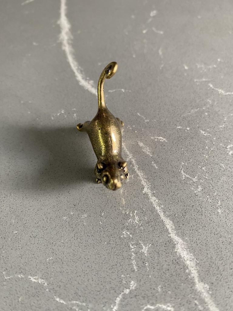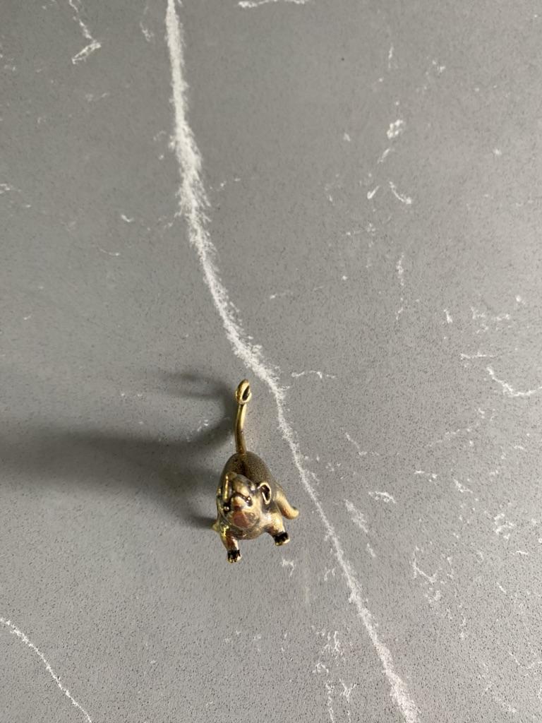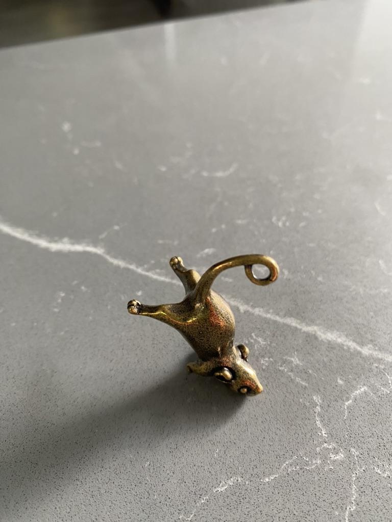 Vintage Brass Cute Cartoon Rat Car Keychain Pendants Copper Long Tail Mouse Key Ring Hanging Trinkets Chinese Rat New Year
