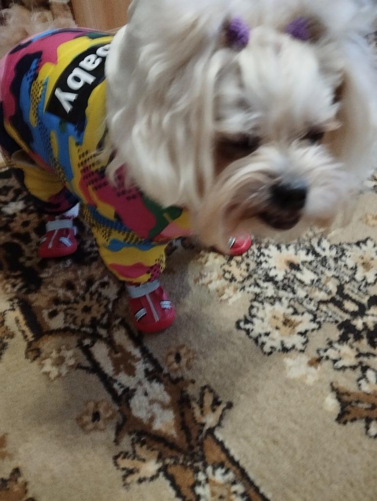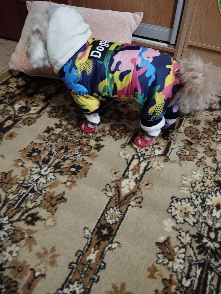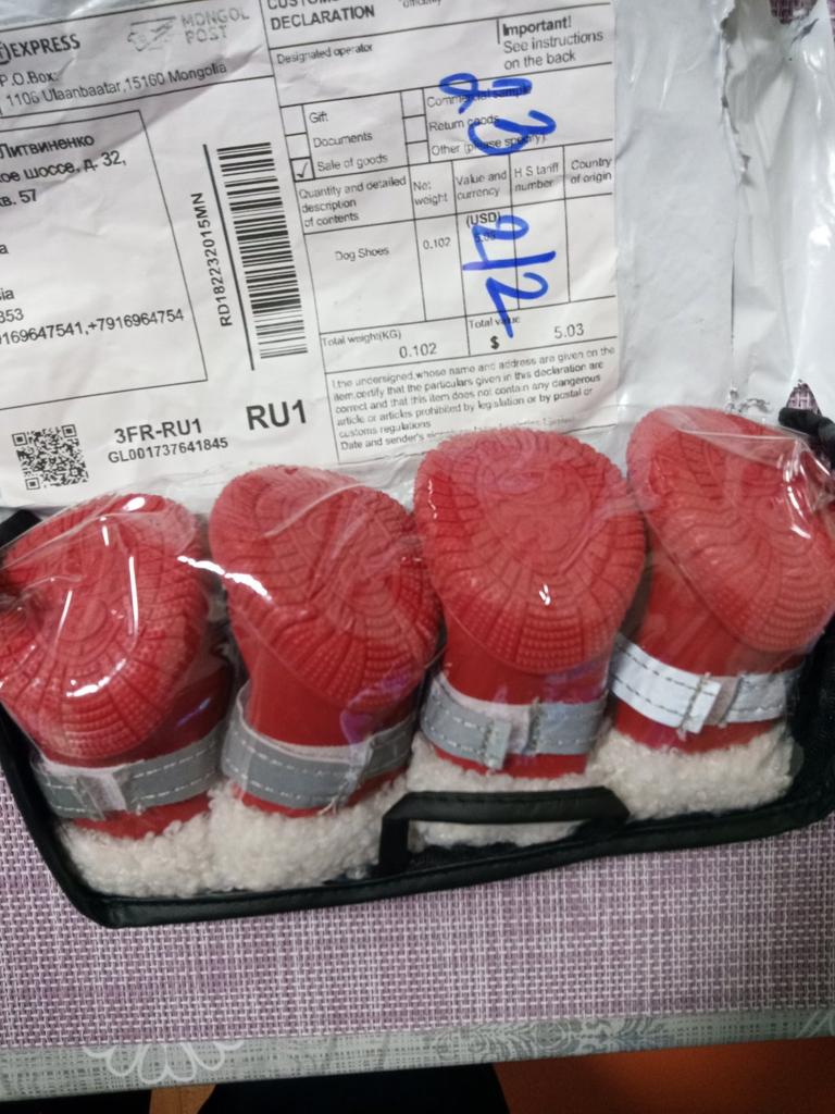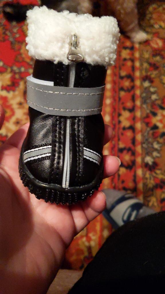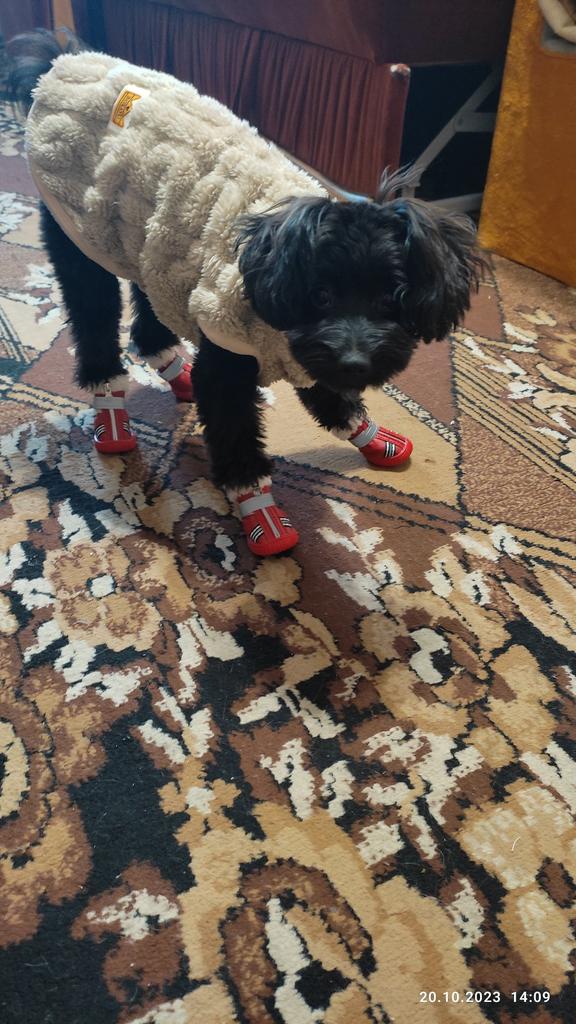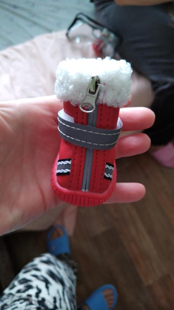 I ordered on 7.12, I picked it up in Dnipro on 3.01, it was delayed due to the strikes of the Poles at the border ((The quality is good, the zipper works, they are glued well, but they could also make the insole from fur, so that the paws would be warmer! Of all the models of shoes for dogs, I like this one the most - because the foot goes into it from the front and you can lock it in. BUT: I ordered a size 4 with a length of 6 cm and a width of 5 cm (as the seller indicated), but according to the insole, they are actually 5 cm long and 4 cm wide π and we were waiting for these shoes so much, because just now the frosts are strong.keep that in mind!!Thanks to the seller and Joom