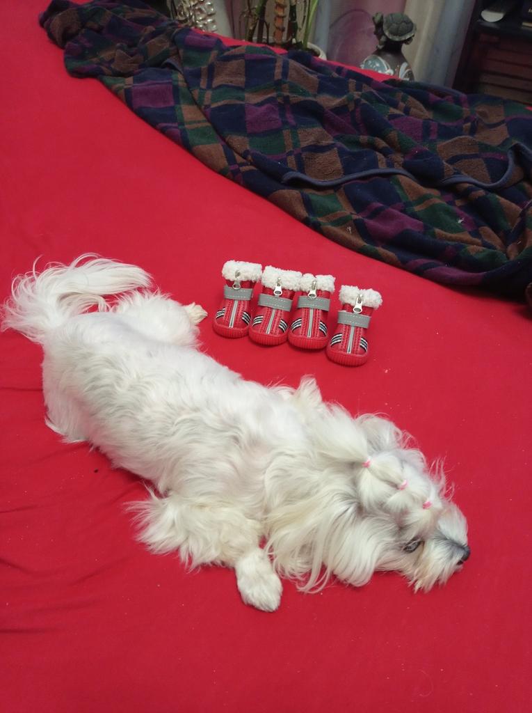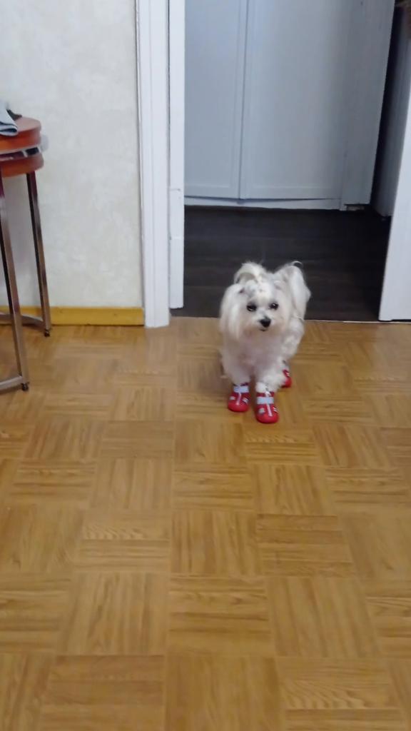 Very nice shoes, comfortable to wear, but, unfortunately, we missed the size - a 7.5 kg sheltie has too thin legs, size 4 turned out to be too big, maybe size 3 would be better.