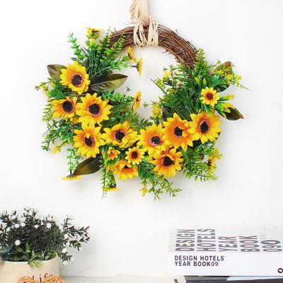 Artificial Sunflower Wreath 12 Inch Summer And Autumn Wreath Sunflower Decoration Flower Wall Window Wedding Decoration Indoor And Outdoor