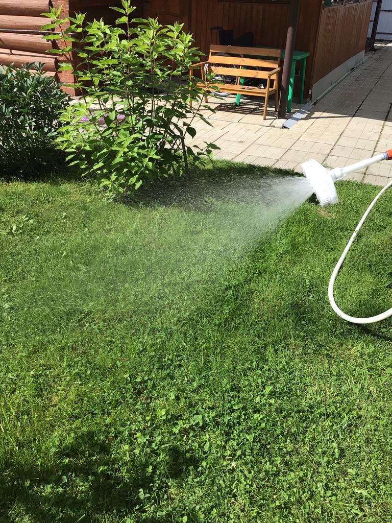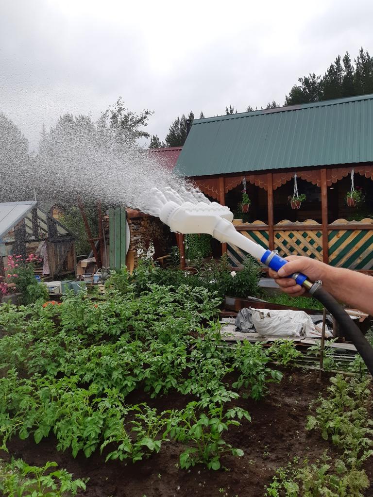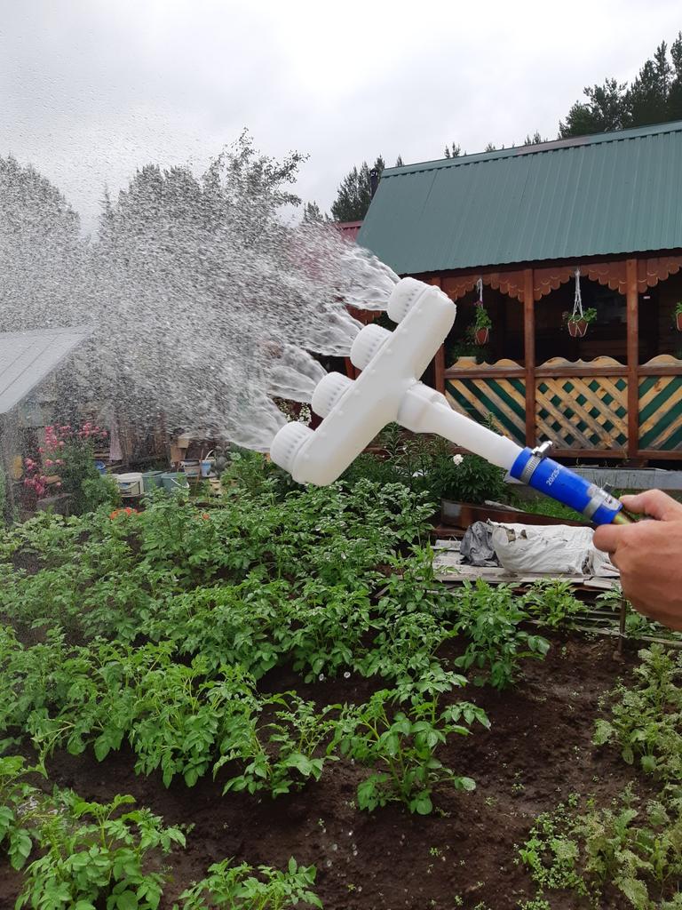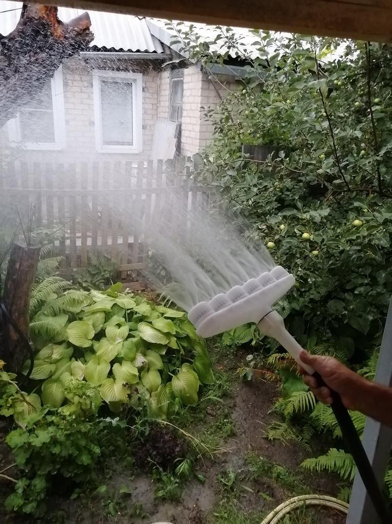 It disperses water well, you can make the pressure more or less. But the device itself is very heavy, and the water was held with both hands. Not recommended for women.