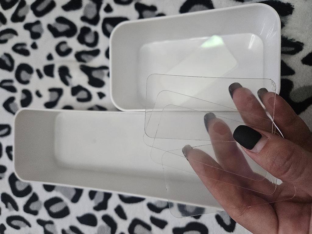 Product consistent with the order. The parcel arrived ahead of time. The set includes tapes for sticking. In my case, attached to a cork board. Adhesives do the trick. Nice containers, well made. I recommend.