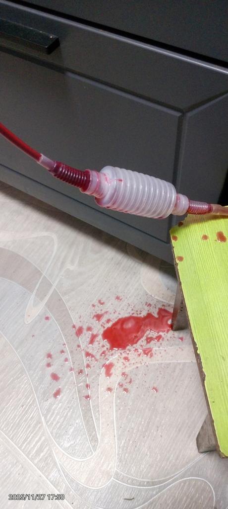 Waited for the hose ready and wine from apples and plum apple cider vinegar. Everything was cleanly siphoned off. The season is over everything went into storage. Thank you
