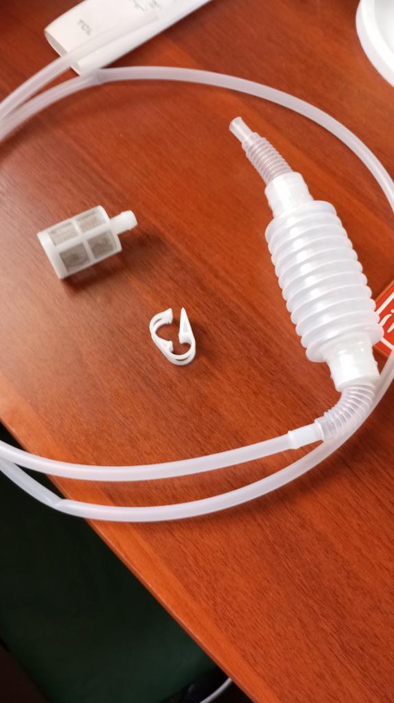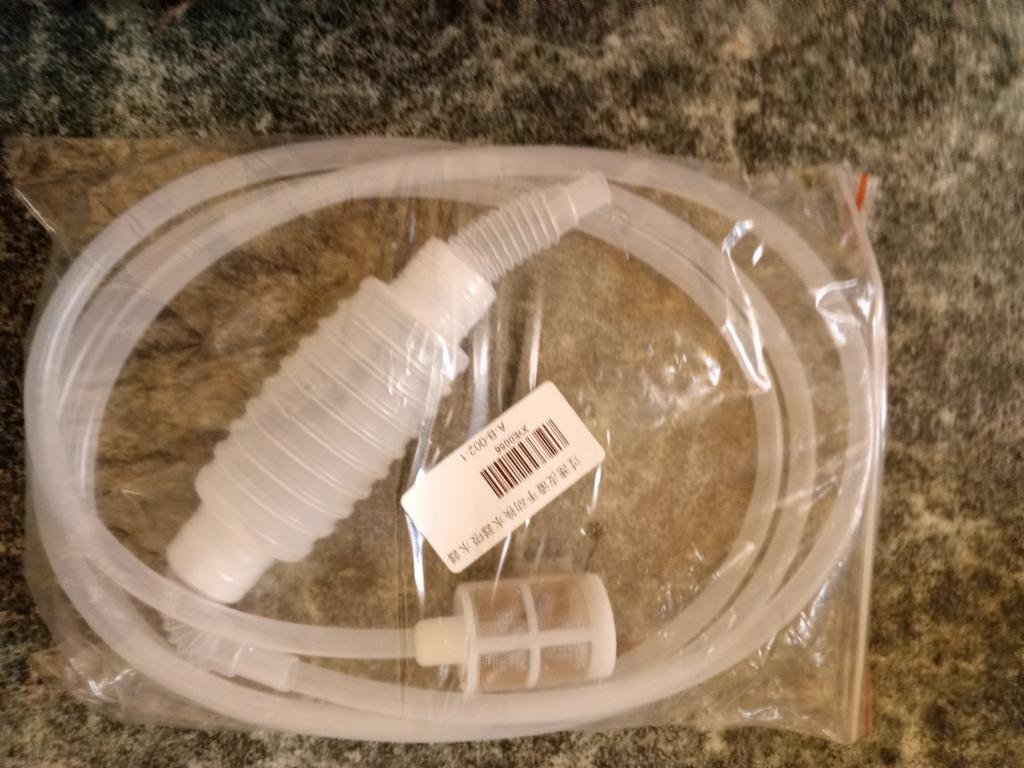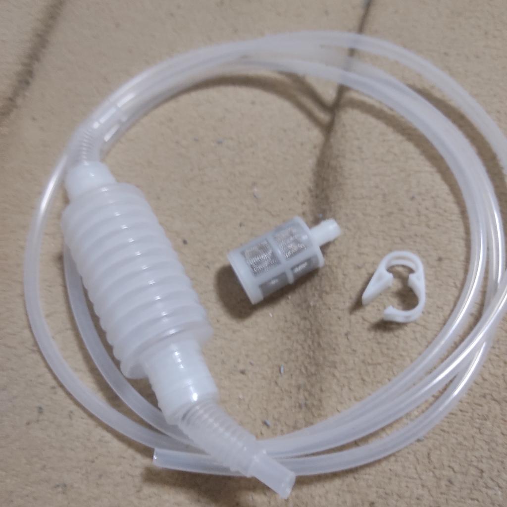 Hose with filter, check valve, and clip for attaching to a container. Diameter 6 mm. Looks well-made. 254₽.