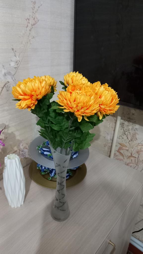 Artificial chrysanthemum π΅οΈ The color is yellow. The color is significantly different from the promo photo. It seems that the seller mixed up the product and put orange instead of yellow. Although in my opinion, the color is closer to warm brown than to yellow or orange π€. So be it ππ . The flower itself is very beautiful: a lush bud on a long stem looks great. I'll think about it, maybe later I'll order it in another color. I am attaching enough photos to make it easier for you to decide πΈ π If the information was useful, please like it π§‘β€οΈπ§‘ I received the goods in 34 days in a combined package βοΈ The track was tracked completely. The arrival at the point of issue was announced by sms π². Packaging: ordinary postal package and individual packaging. Product without extraneous smell. Happy shopping and fast deliveries to everyone ποΈβΊοΈππ΅οΈ PS: Need promo codes? Then be sure to visit my Telegram channel Olena.joom.thebest (t.me/olenajoom), where I regularly publish promotional codes to make your purchases even more profitable ππ.