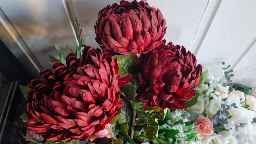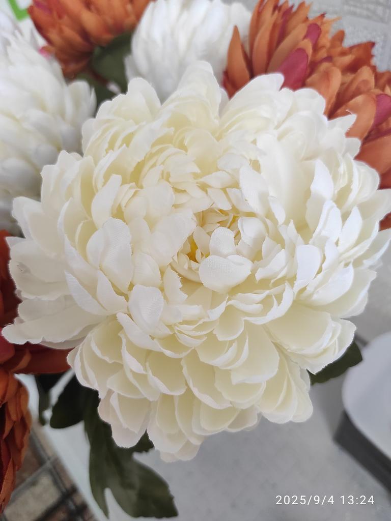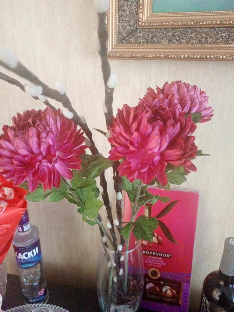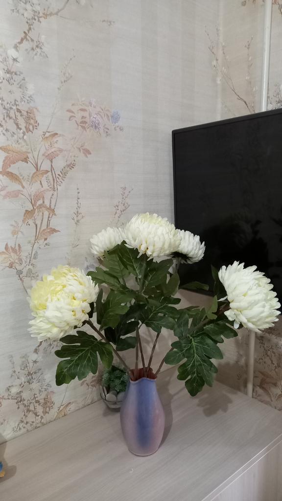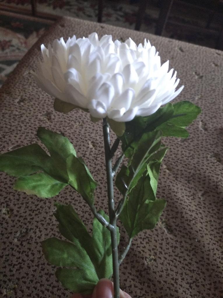 These chrysanthemums look very beautiful when you straighten them out. The quality is good π, but the presentation says they are made of silk, I can't confirm that. But I'm still very happy that I ordered them, because they are in no way inferior to the original (compared to real flowers). I don't take a photo because they correspond exactly to the picture when I ordered.
