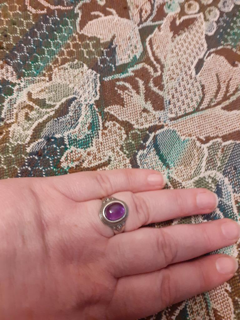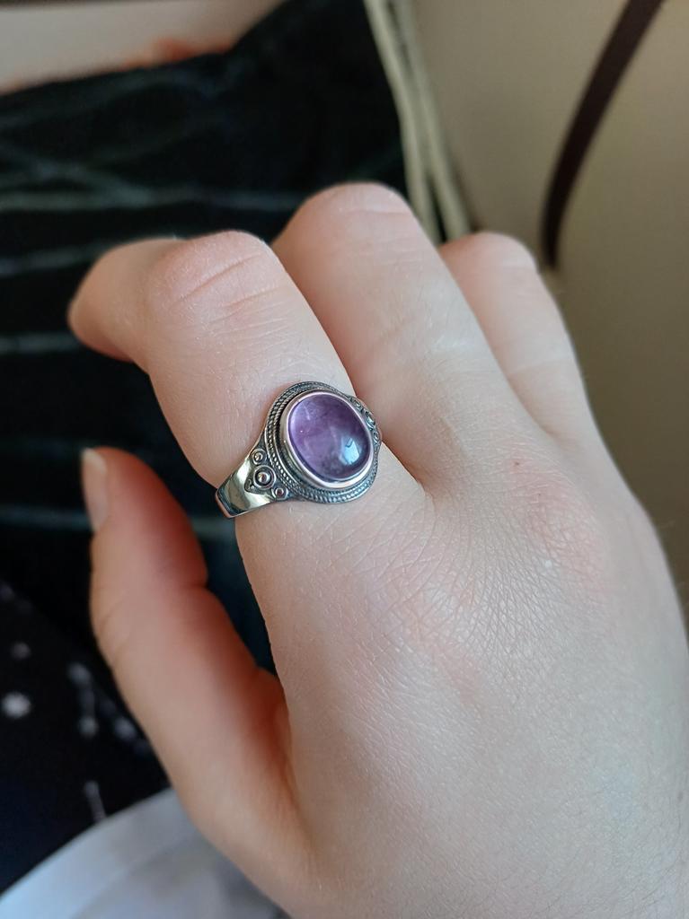 A small chip on the stone. Otherwise the ring is good, smooth and comfortable, the size is correct, there is a hallmark. But the chip spoils the look