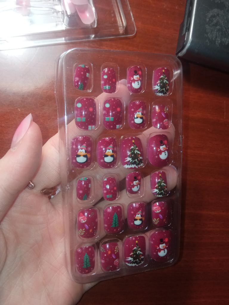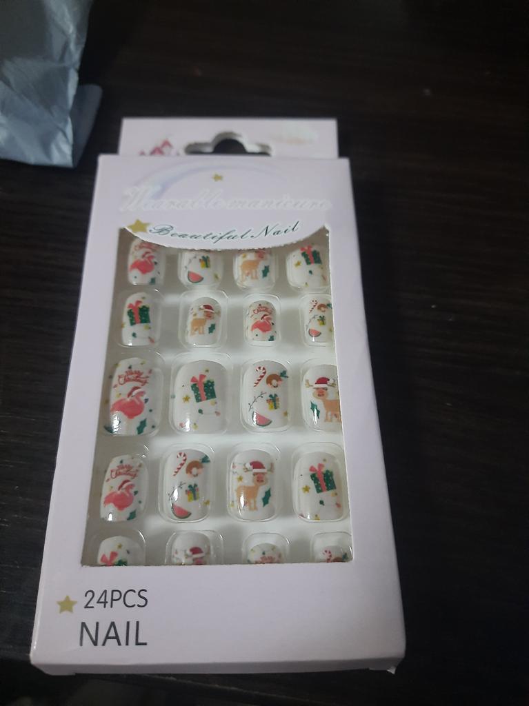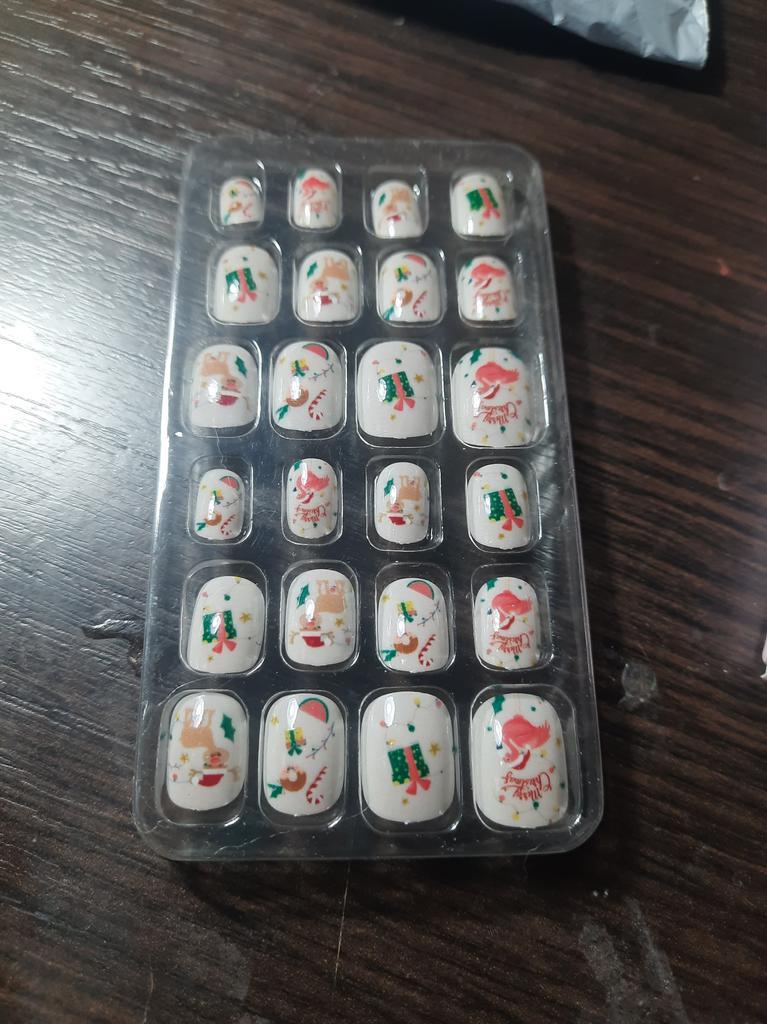 24Pcs/Set Self-Adhesive Portable Lovely Eco-Friendly Christmas Self Adhesive Nails Tips Kid Nail Tip