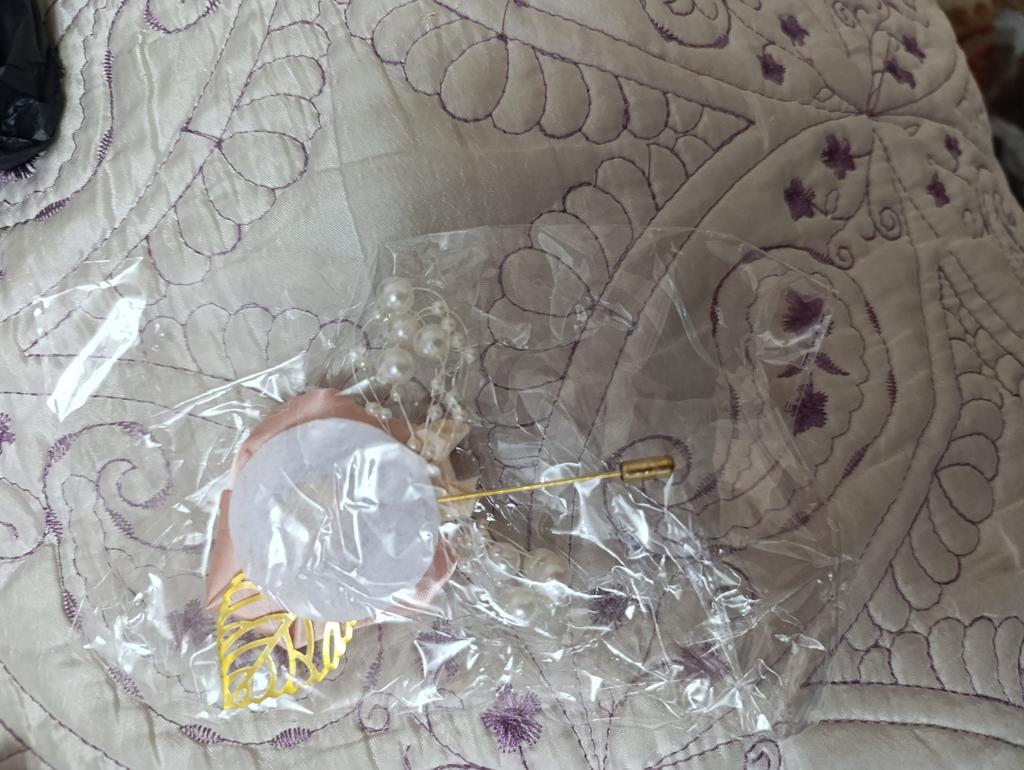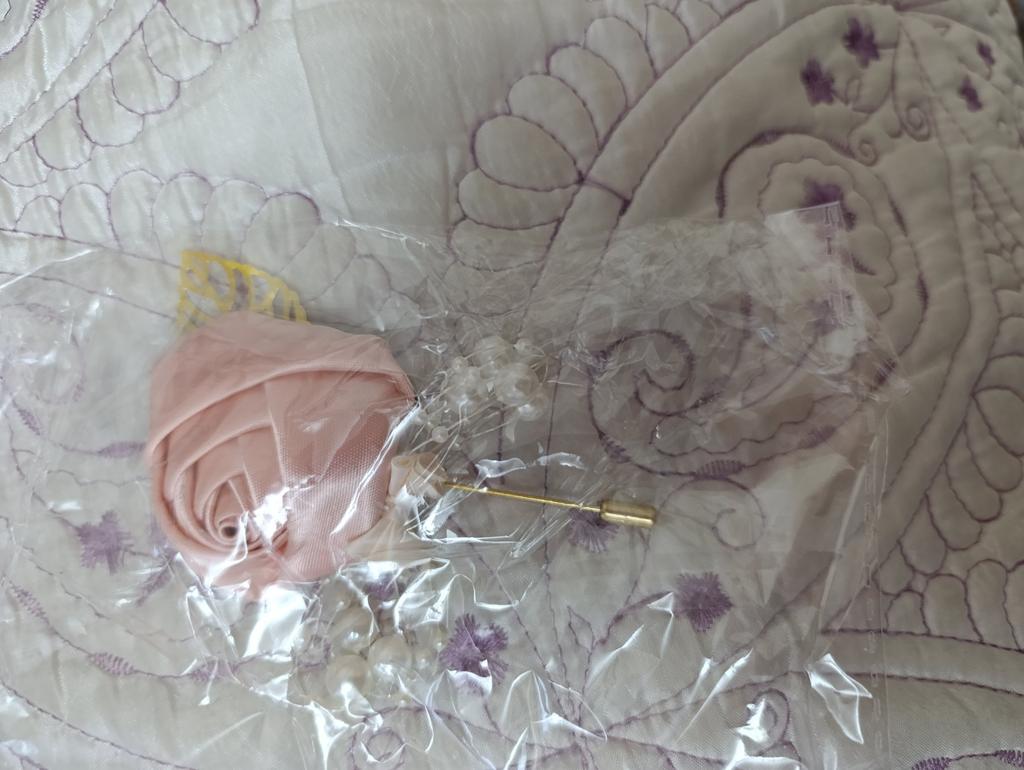 Delivery time ok. Matching pin to my wedding bouquet and tie set from my husband-to-be.