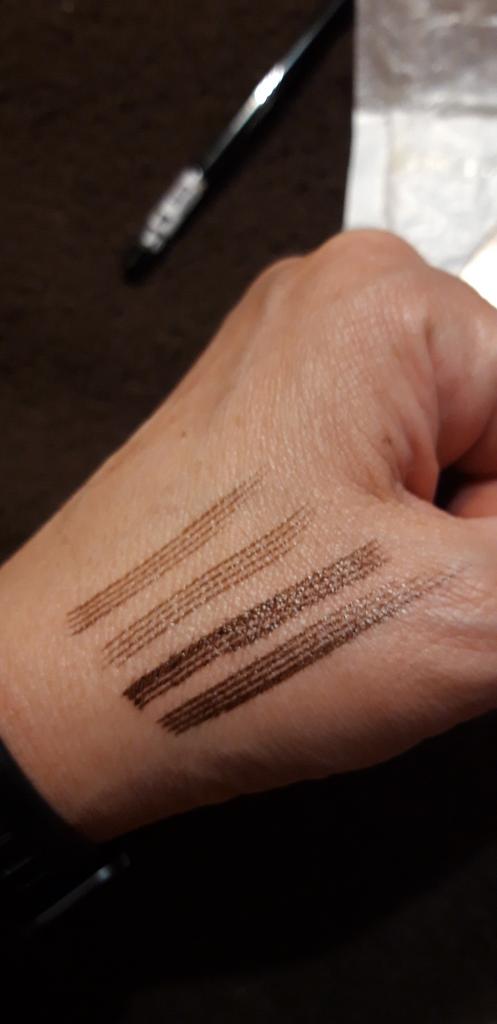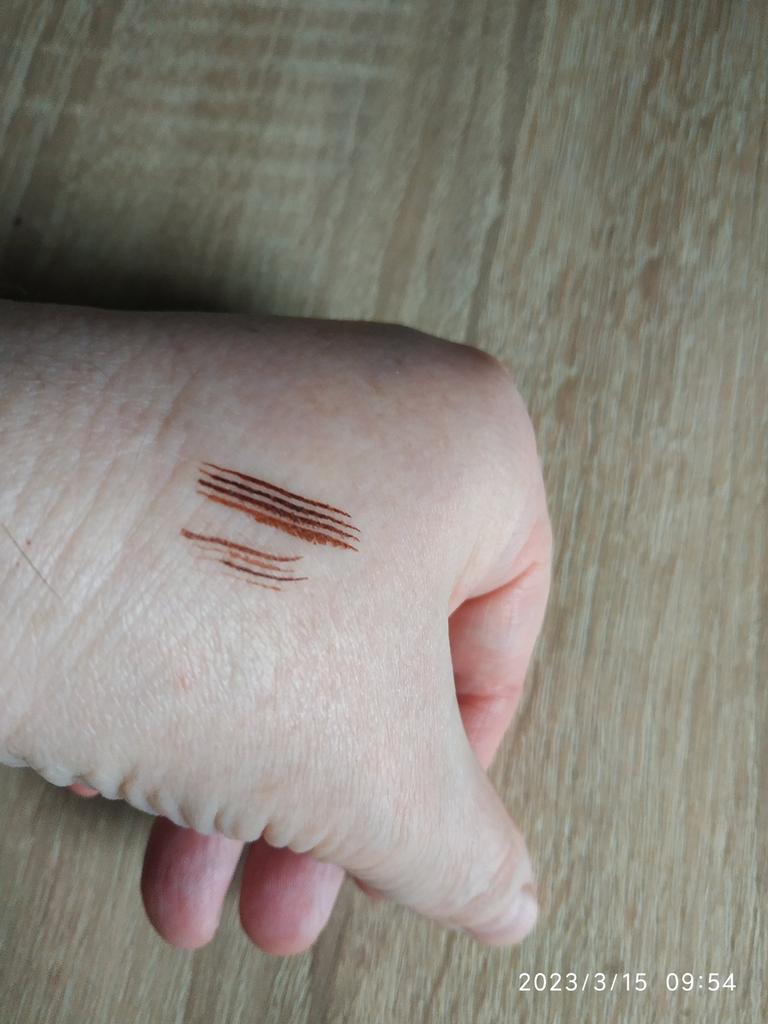 Delivery 1 month, in Moldova. The pencil is good, lit, pressed...but the color is not right. I got Dark Brown, but it's more reddish than tan. I expect chocolate color. Draws fff well, pressed, as if it has a tattoo effect!