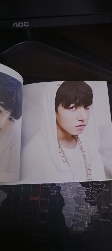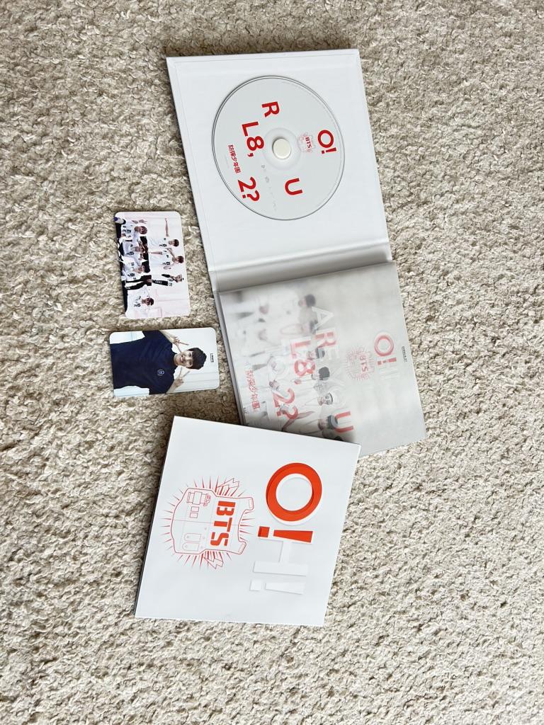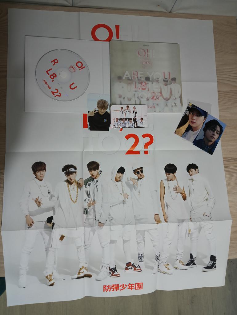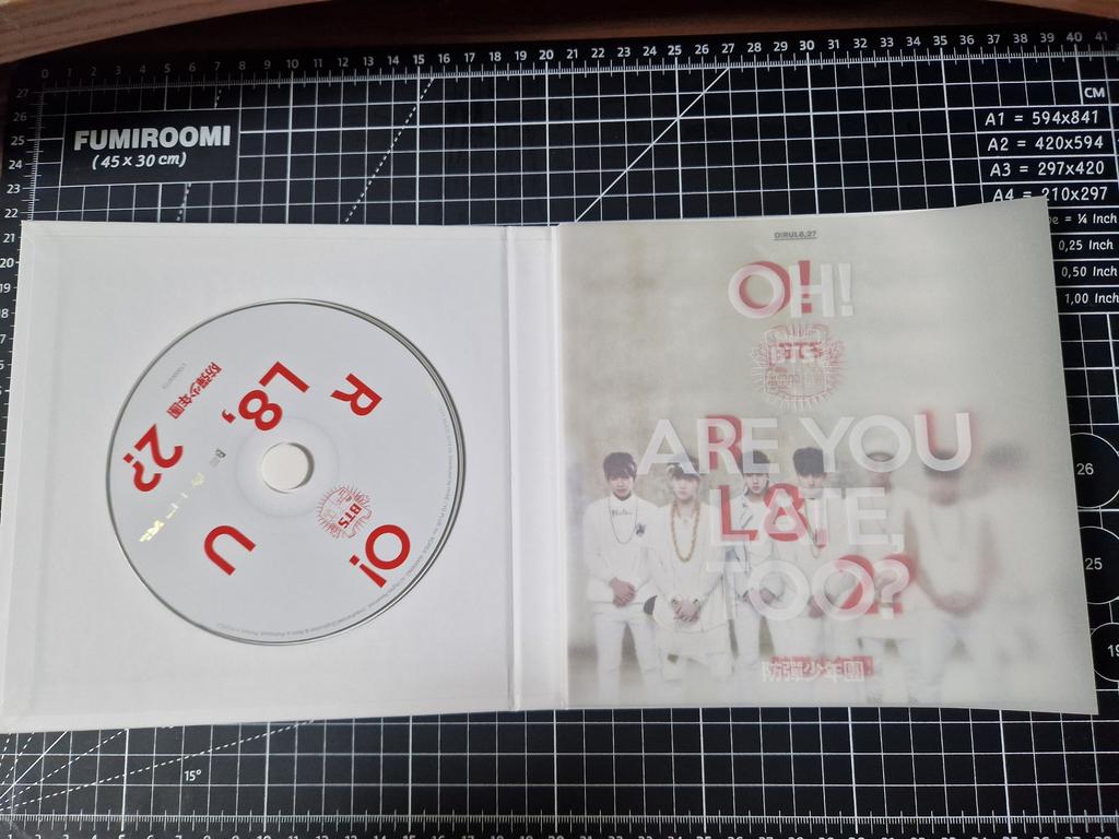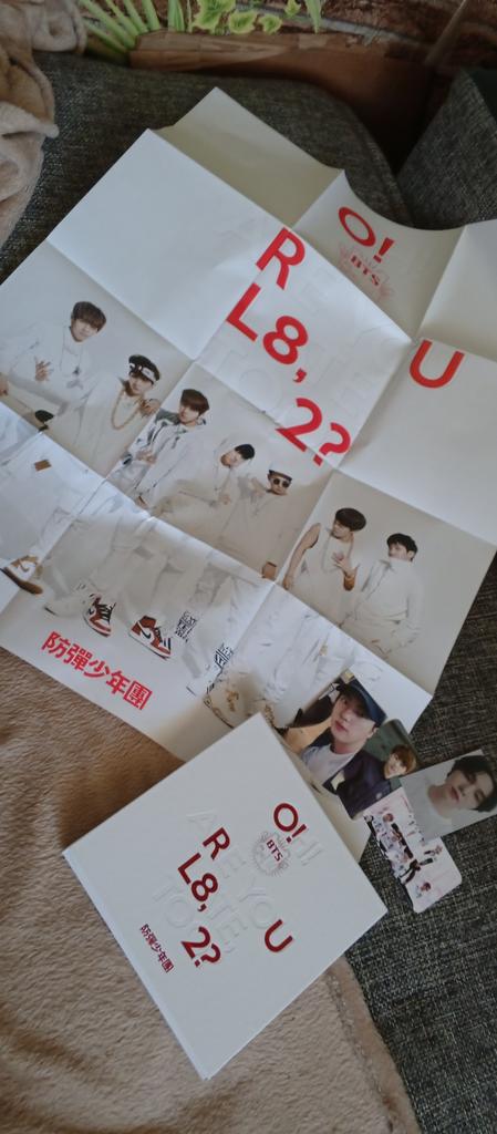It arrived ahead of time. Bring the CD with the photobook, the poster, the 2 photocards and as a gift a fanmade photocard of Jin and a protector