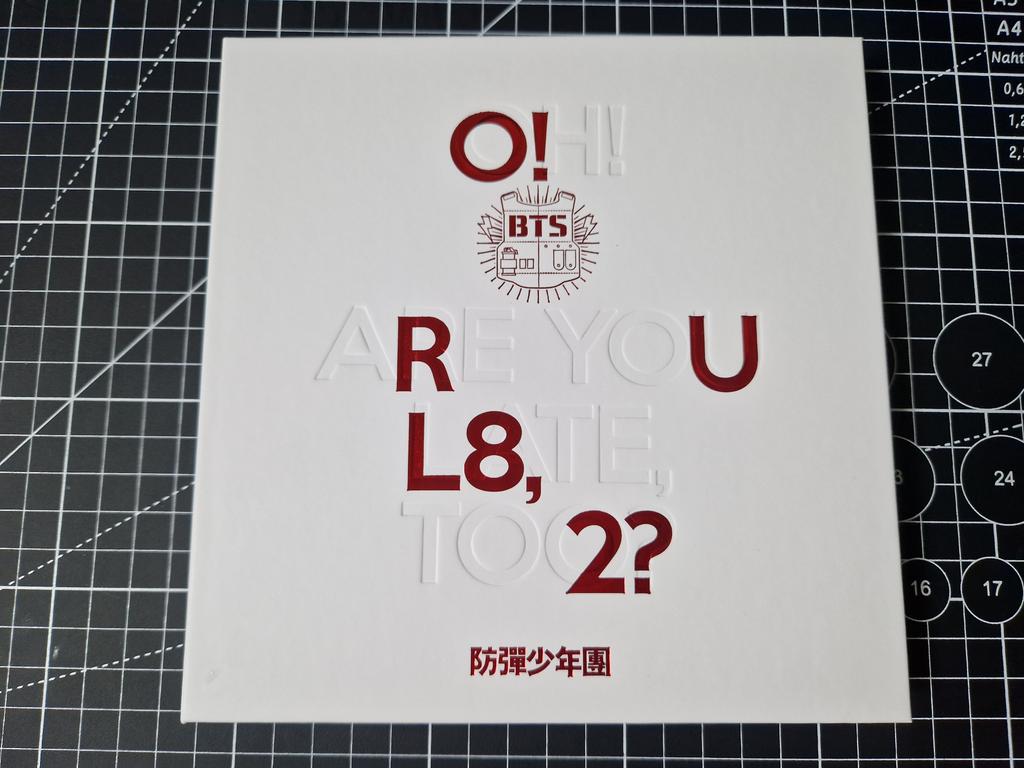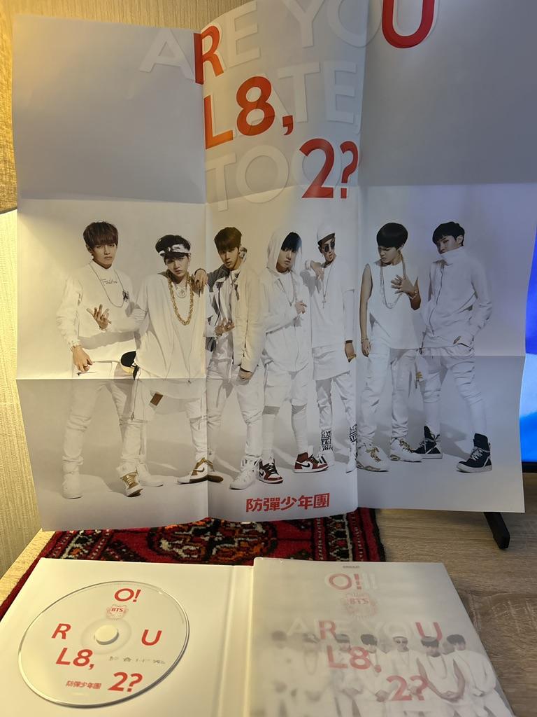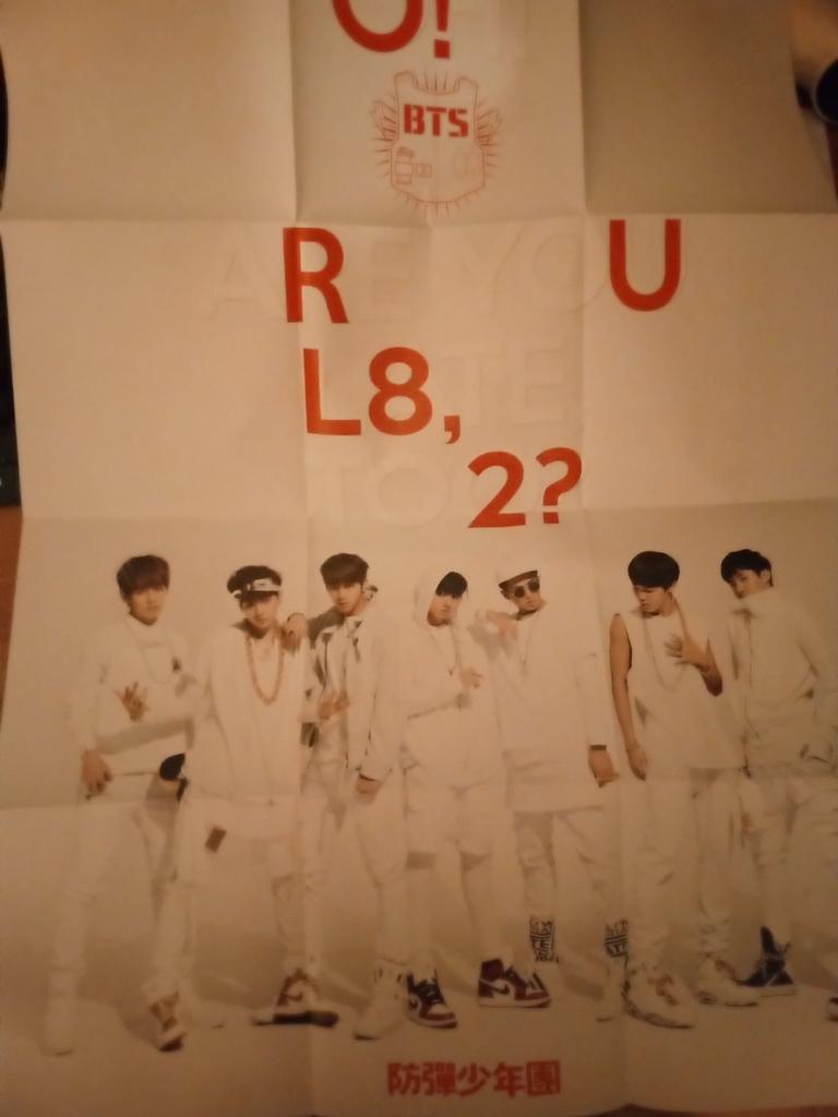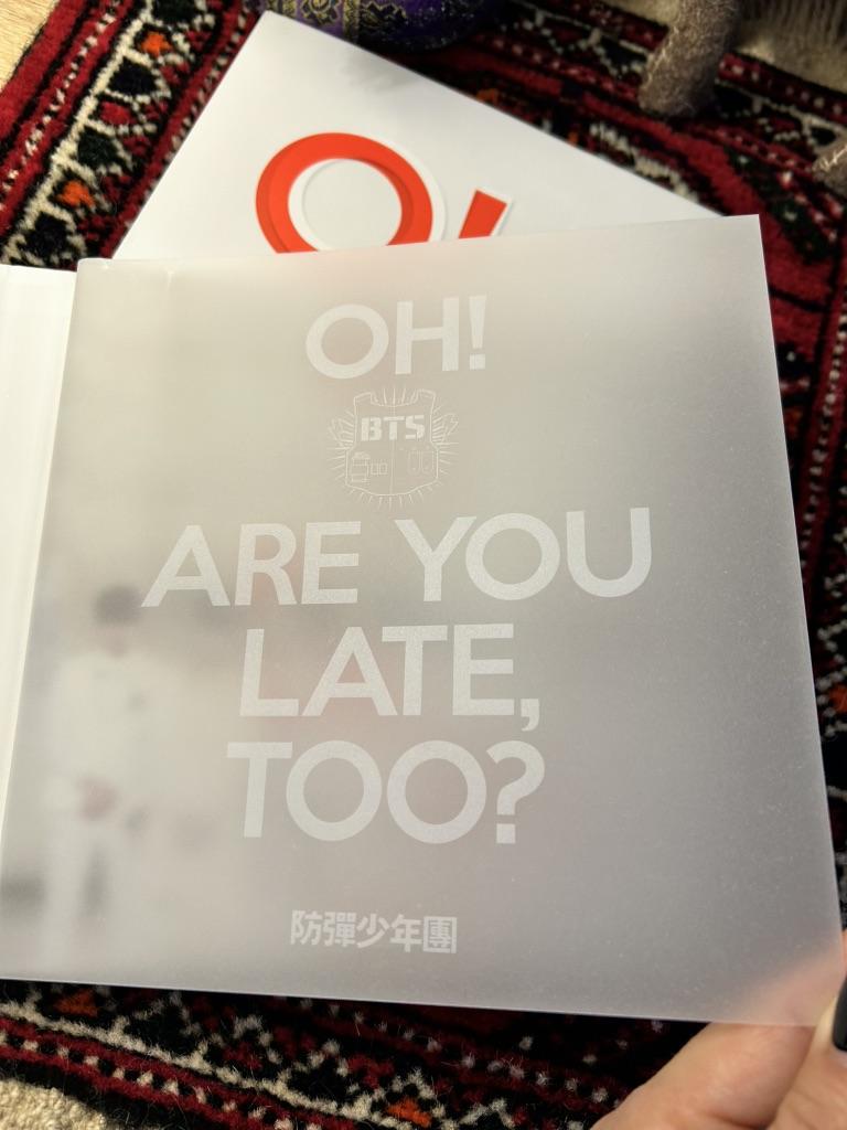 It arrived ahead of time. Bring the CD with the photobook, the poster, the 2 photocards and as a gift a fanmade photocard of Jin and a protector