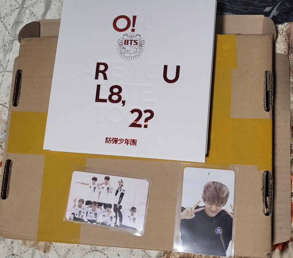 In perfect condition. Super happy. Although the gift photocards could improve. I give them 5 stars, because although they have to improve the photocards, I laughed a lot with Tae's.