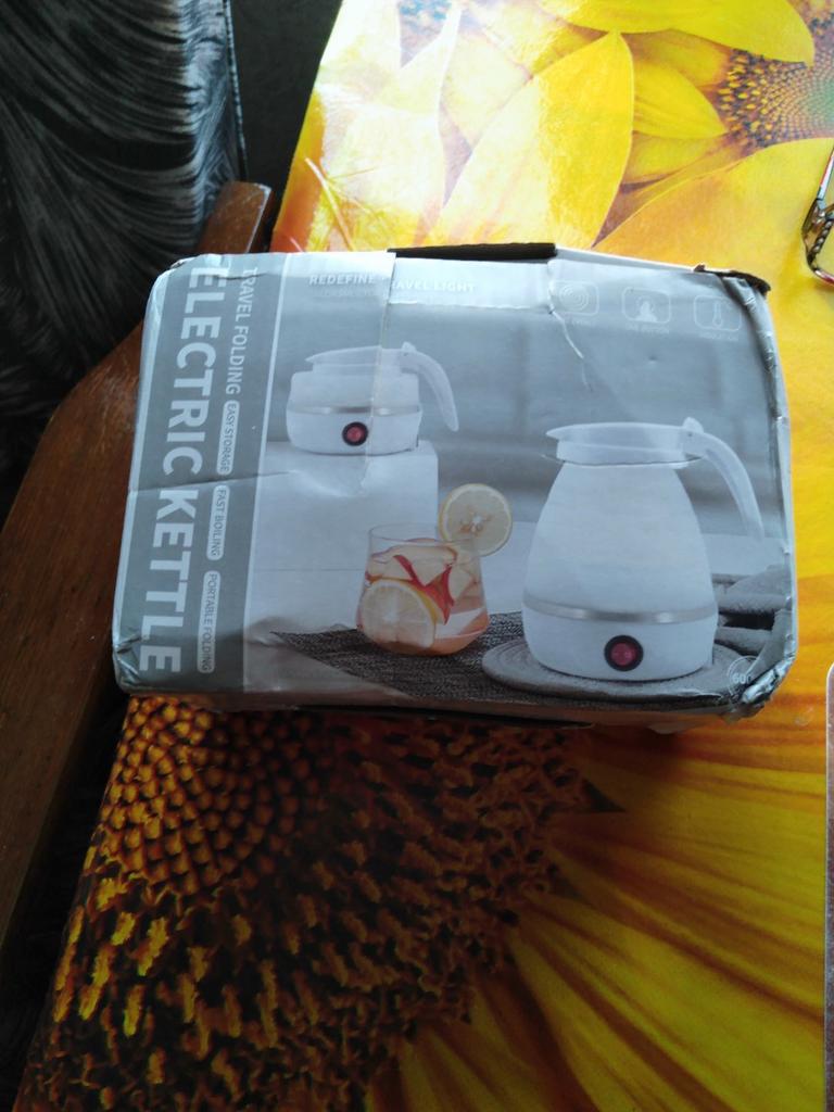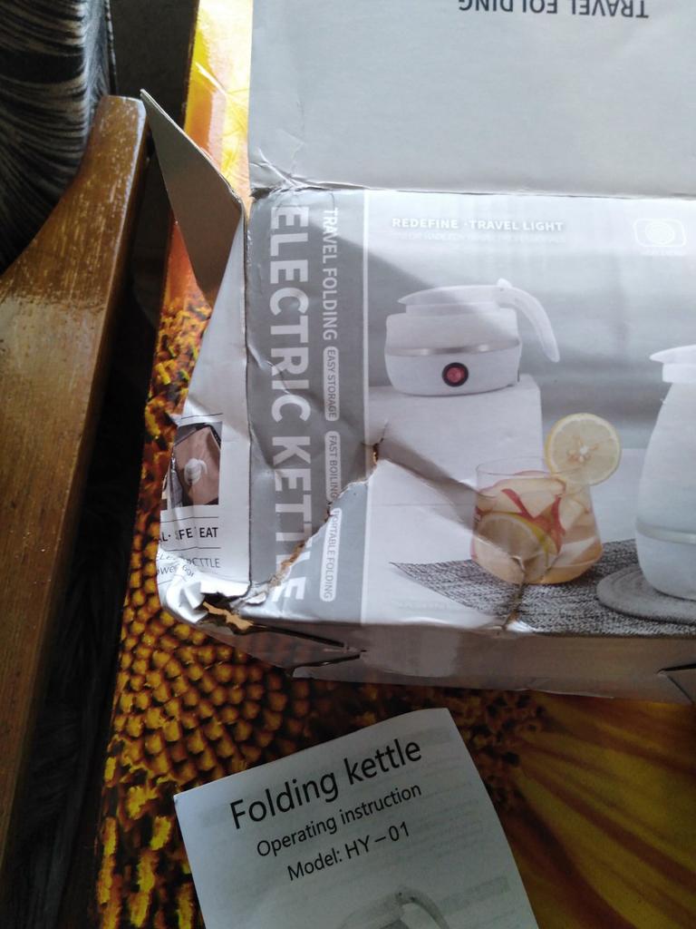 The kettle arrived in good order, it doesn't turn off by itself for me. I boiled it with vinegar, the smell went away. For the road - super!!!!