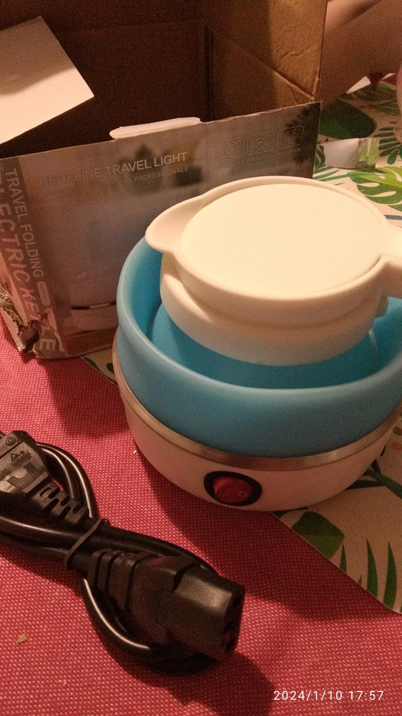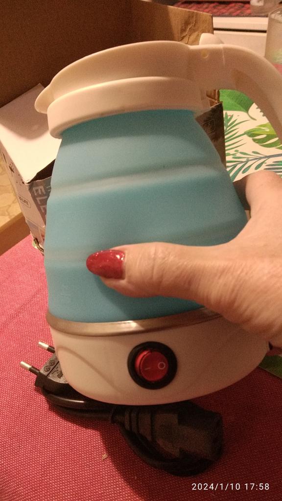 A foldable, practical cooking pot for vacation. I boiled 0.7 liters of water, it took 6:30 minutes. When folded, the pot is 10 cm high, 12 cm wide. The cable is 60 cm long. I recommend it. 👍 Thank you.😊