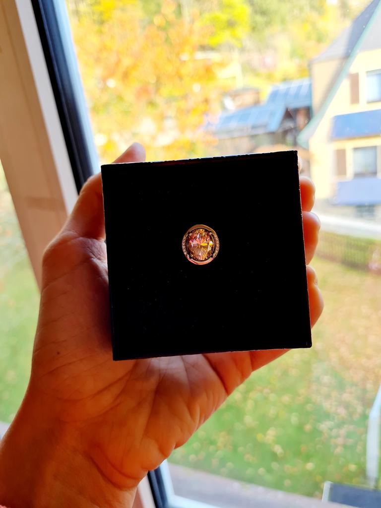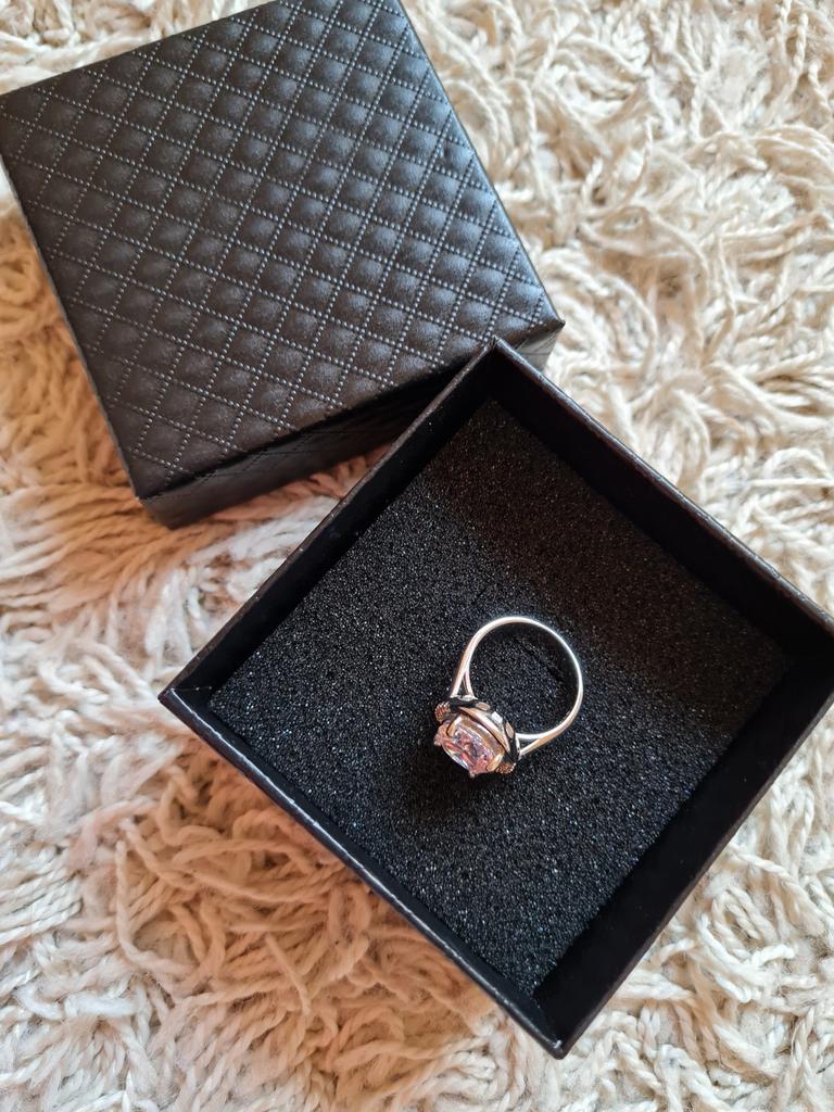 It looks like rhodium plated silver but leaves the color on the fingers I don't recommend buying it it's not real silver!!