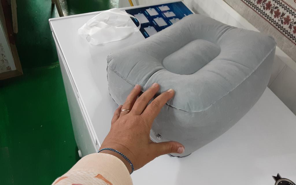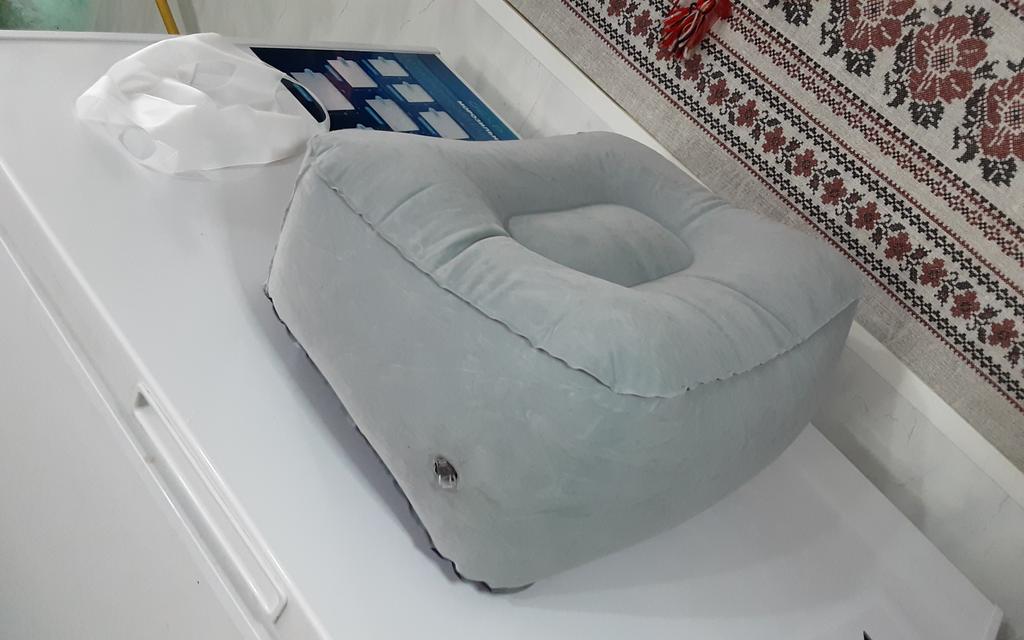 An inflatable pillow for the legs, I thought it would be higher, well, under my feet, it’s good that it’s not on the floor. The pillow was immediately inflated, it does not deflate, it holds well, even a child can sit down, it does not squeeze through. Thanks, everything is fine!