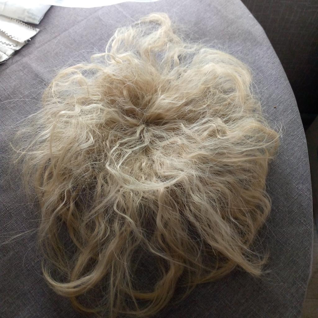 Hair looks like natural hair. It’s not clear how to attach it