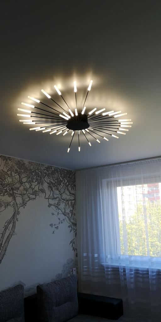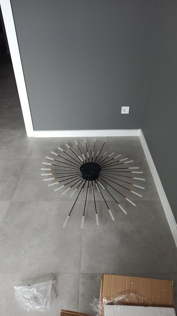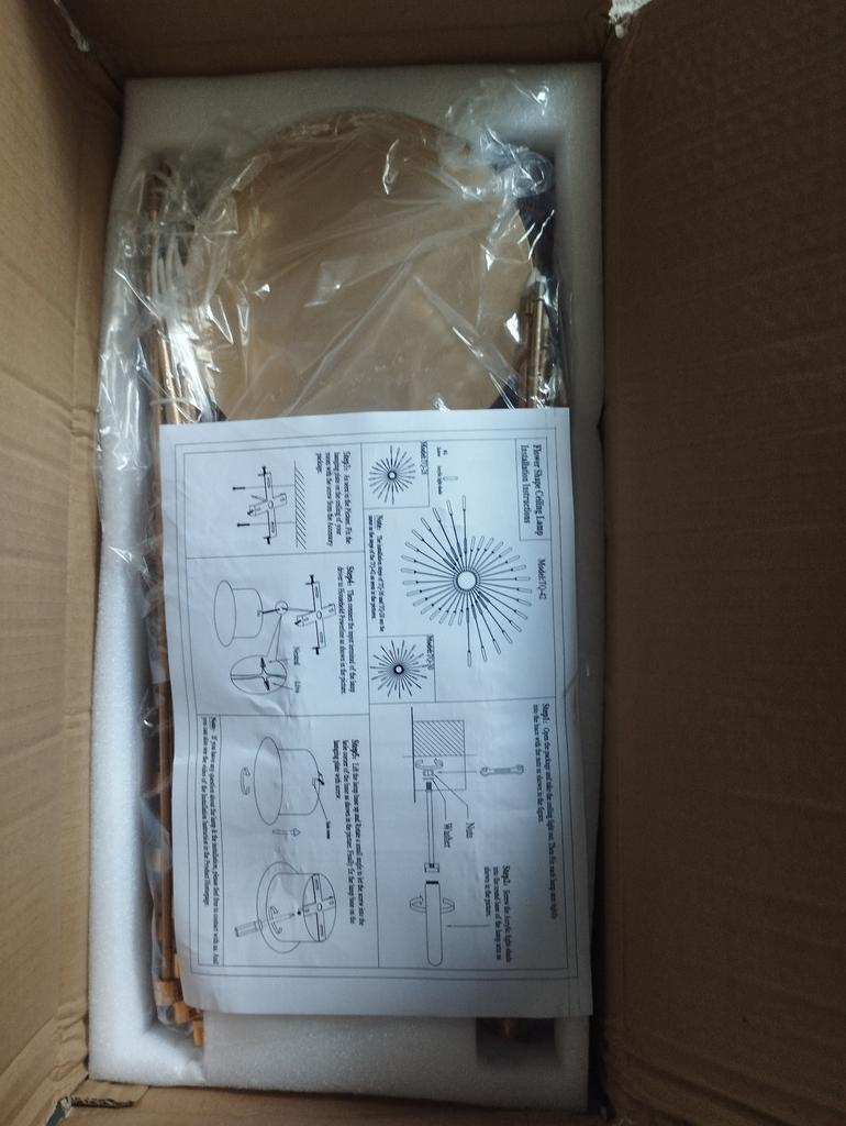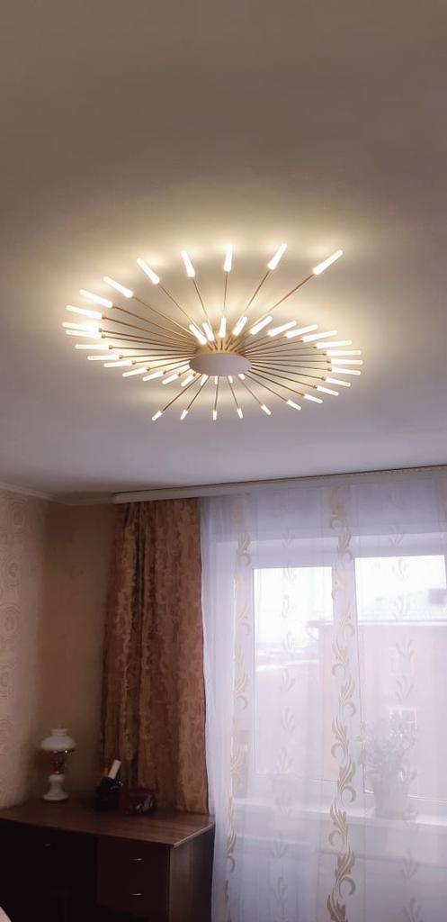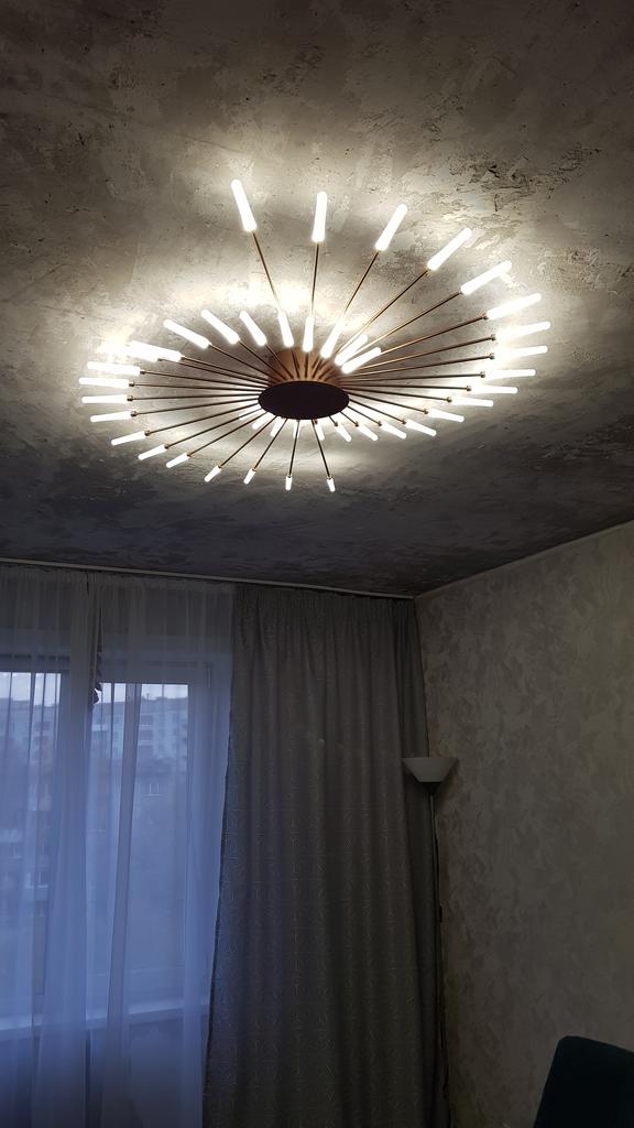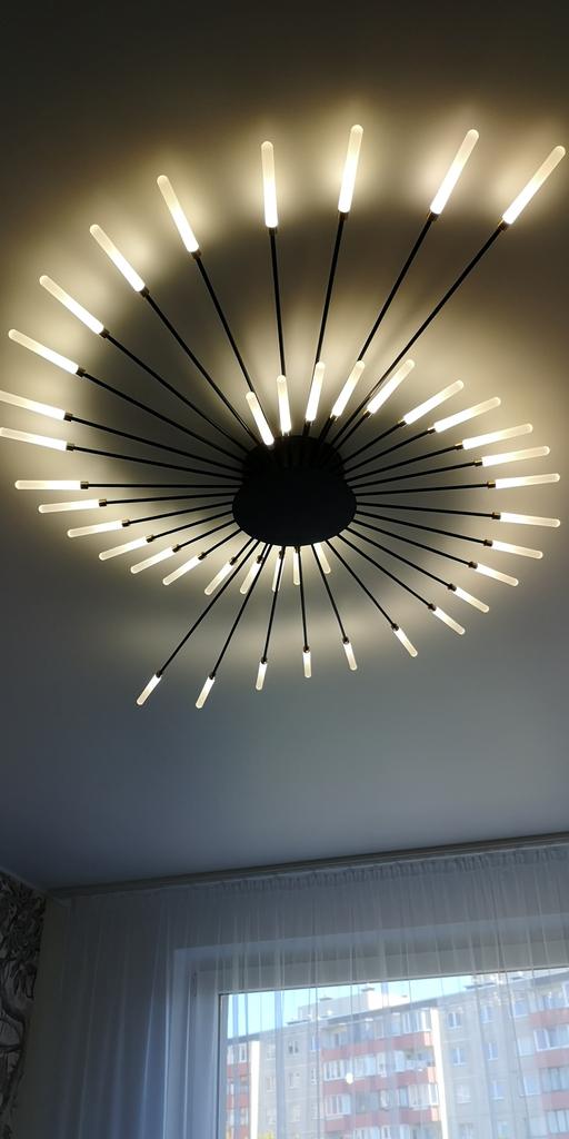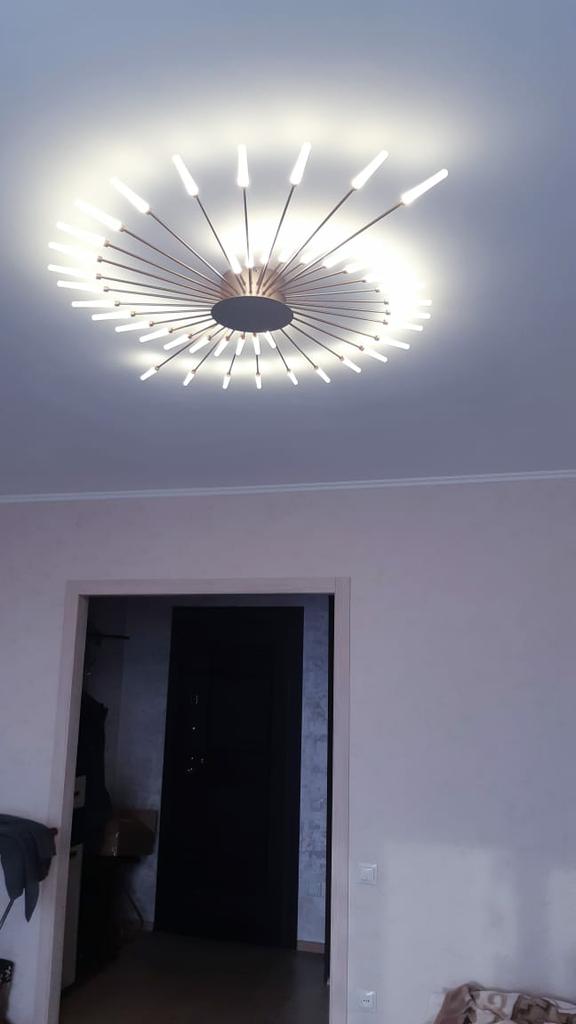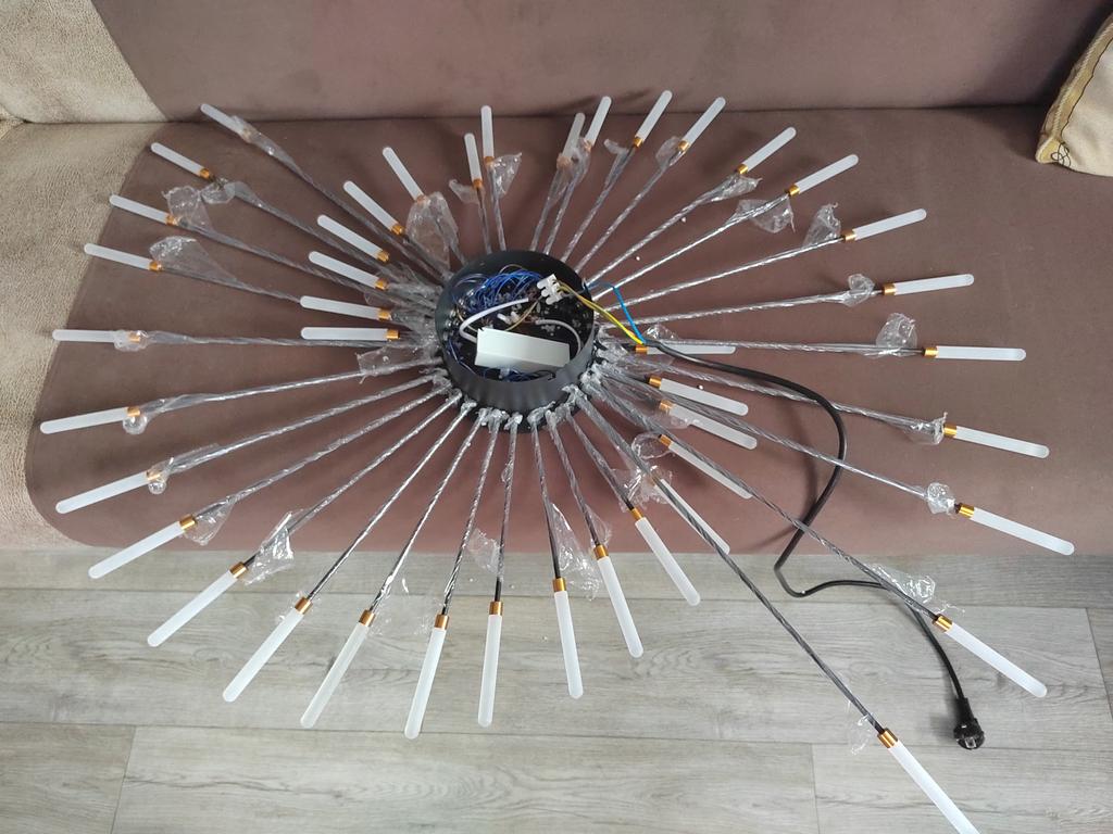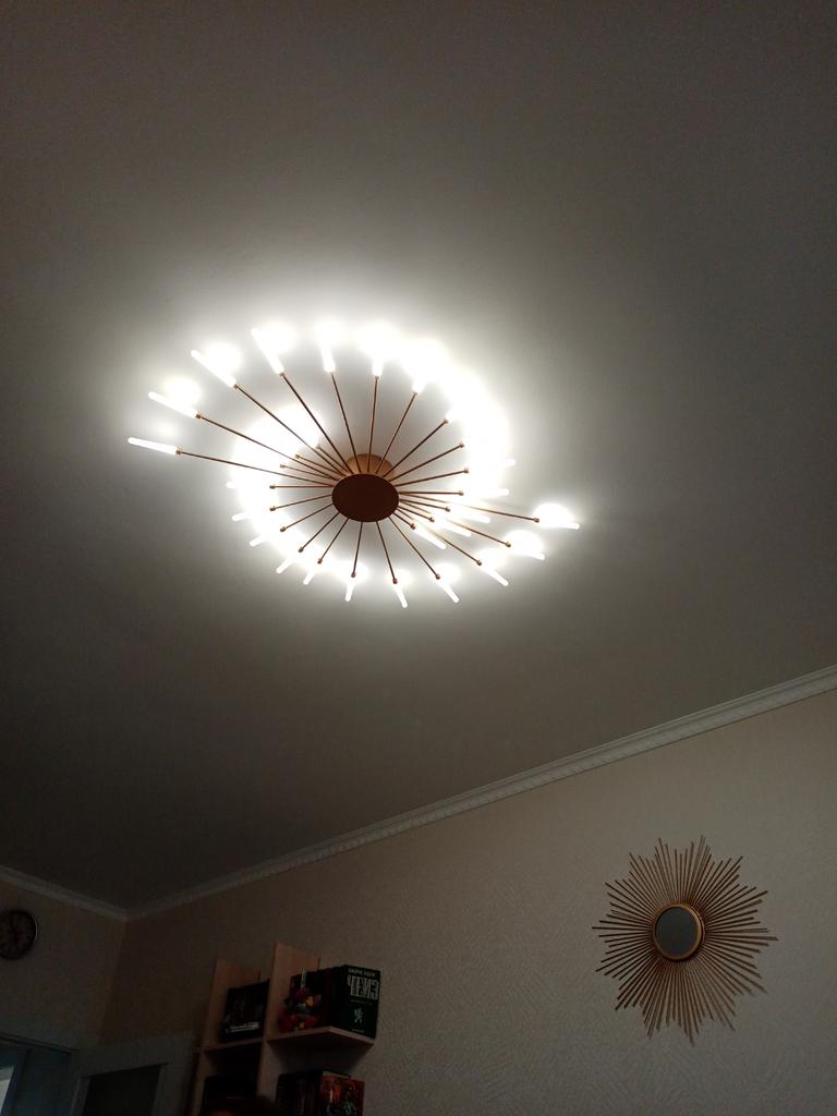 We got a chandelier. We like how it looks. There is a difficulty in assembling, it is very difficult to assemble the rays due to the painted thread, somewhere it was not possible to twist tightly.