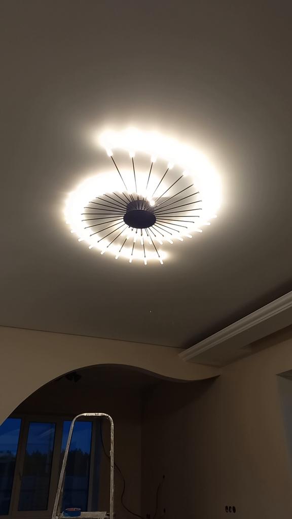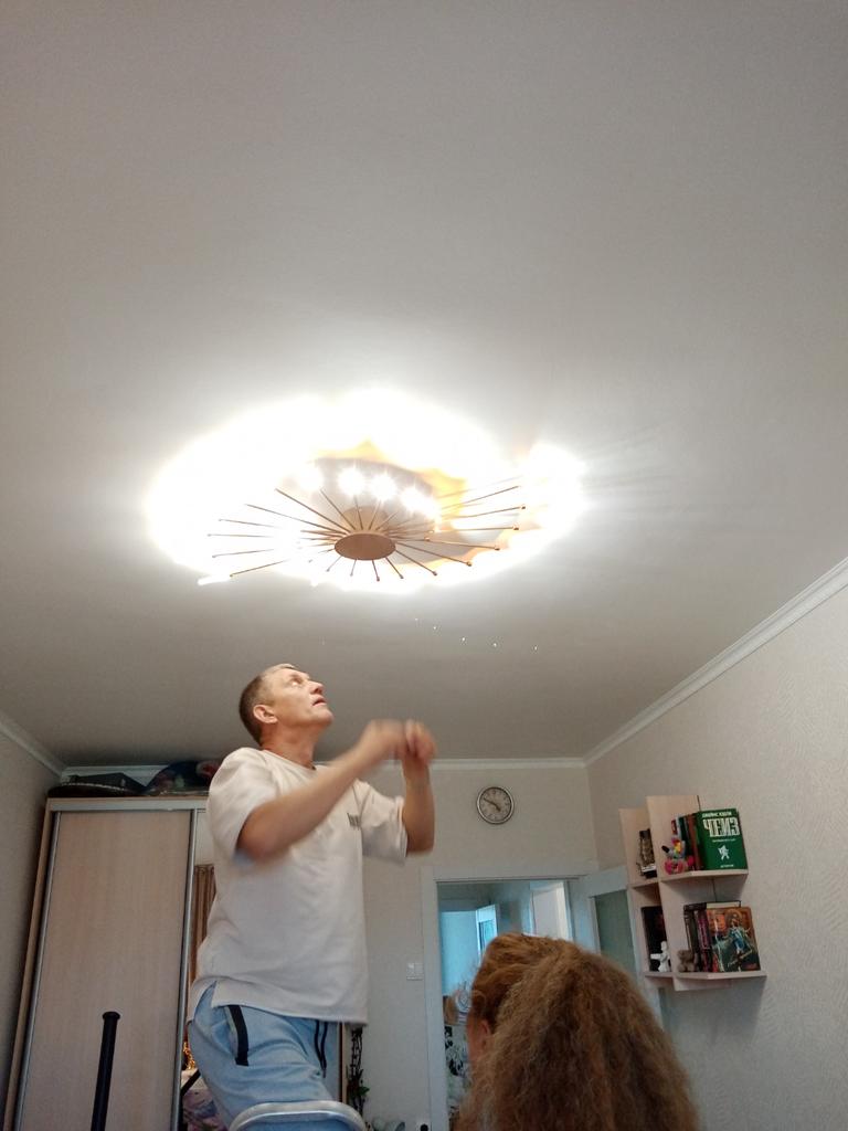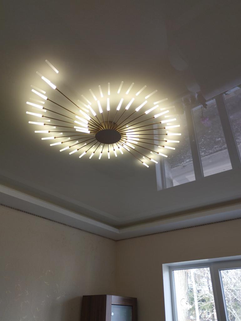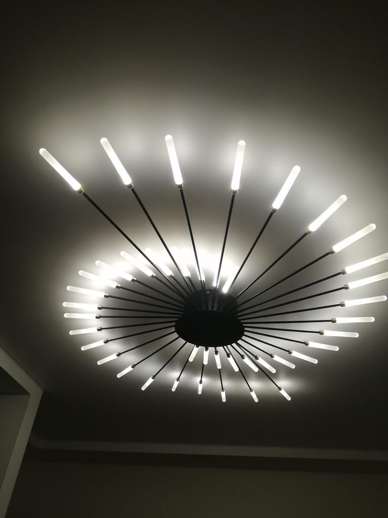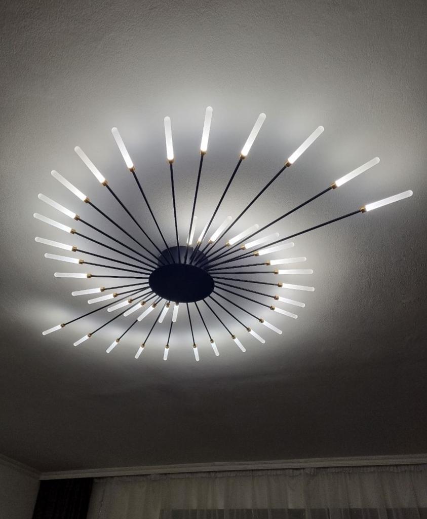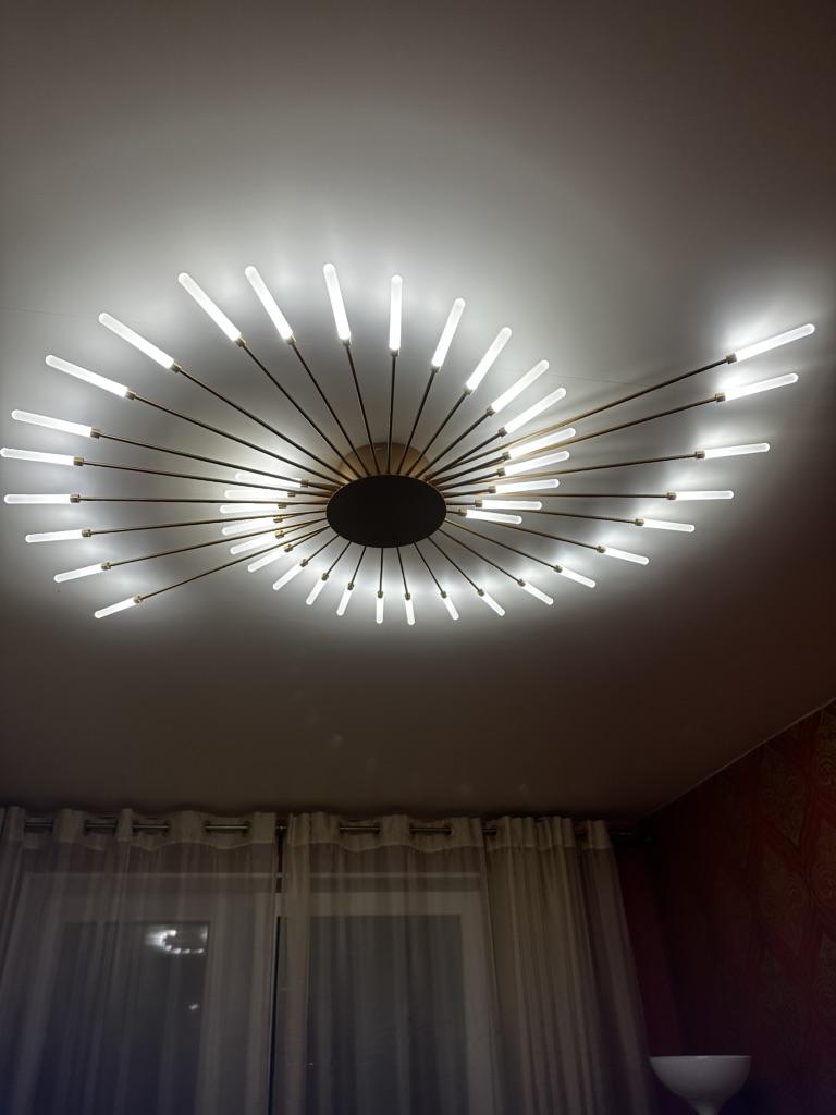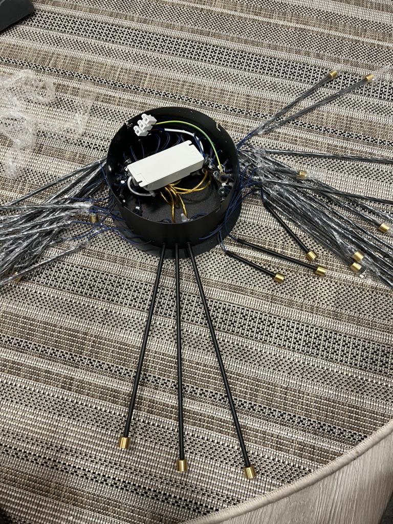 We got a chandelier. We like how it looks. There is a difficulty in assembling, it is very difficult to assemble the rays due to the painted thread, somewhere it was not possible to twist tightly.