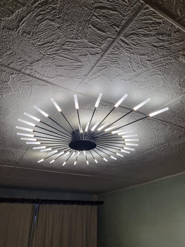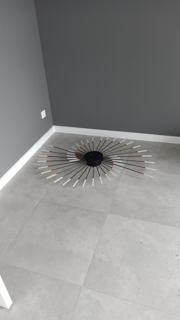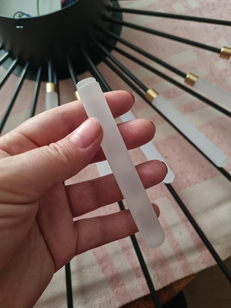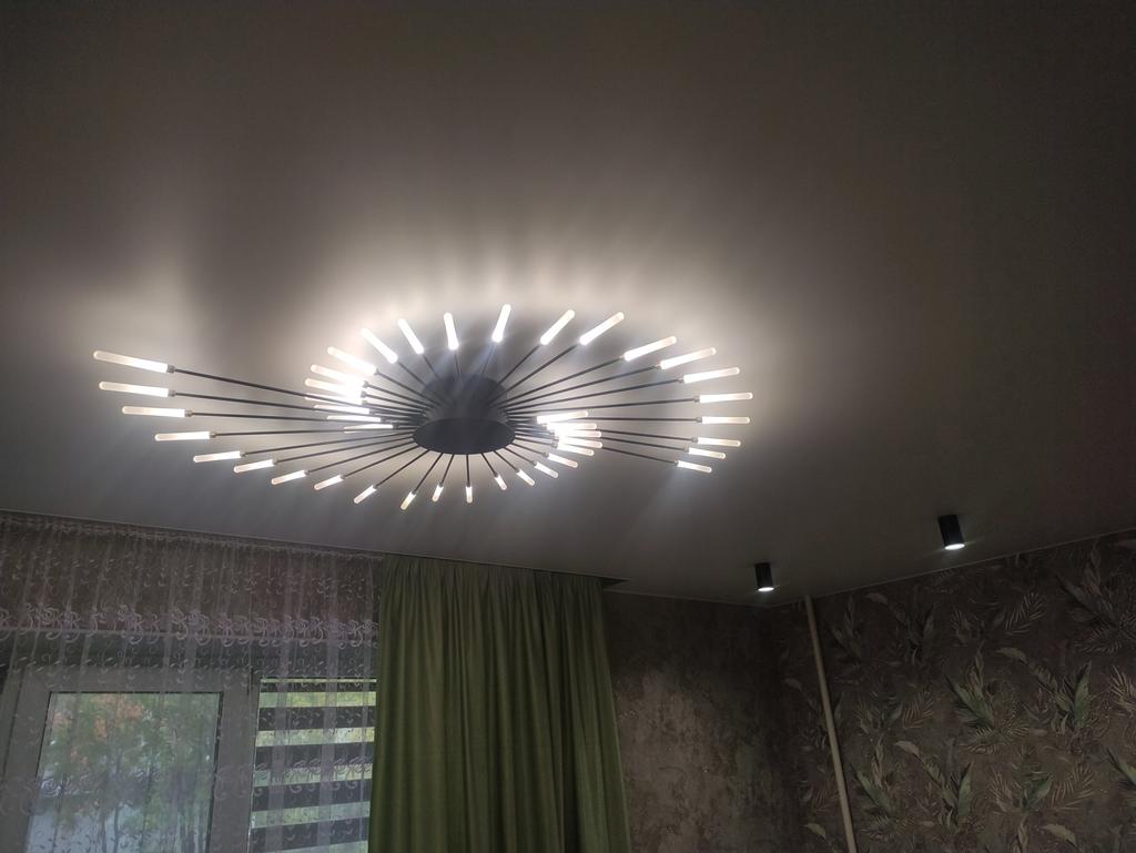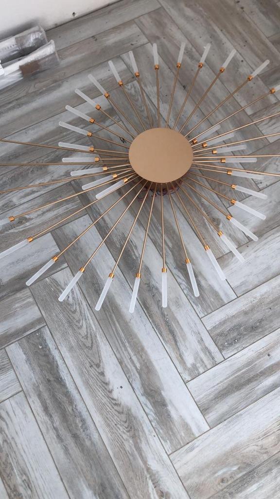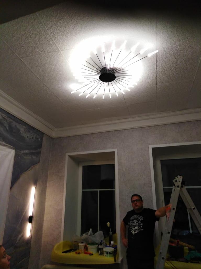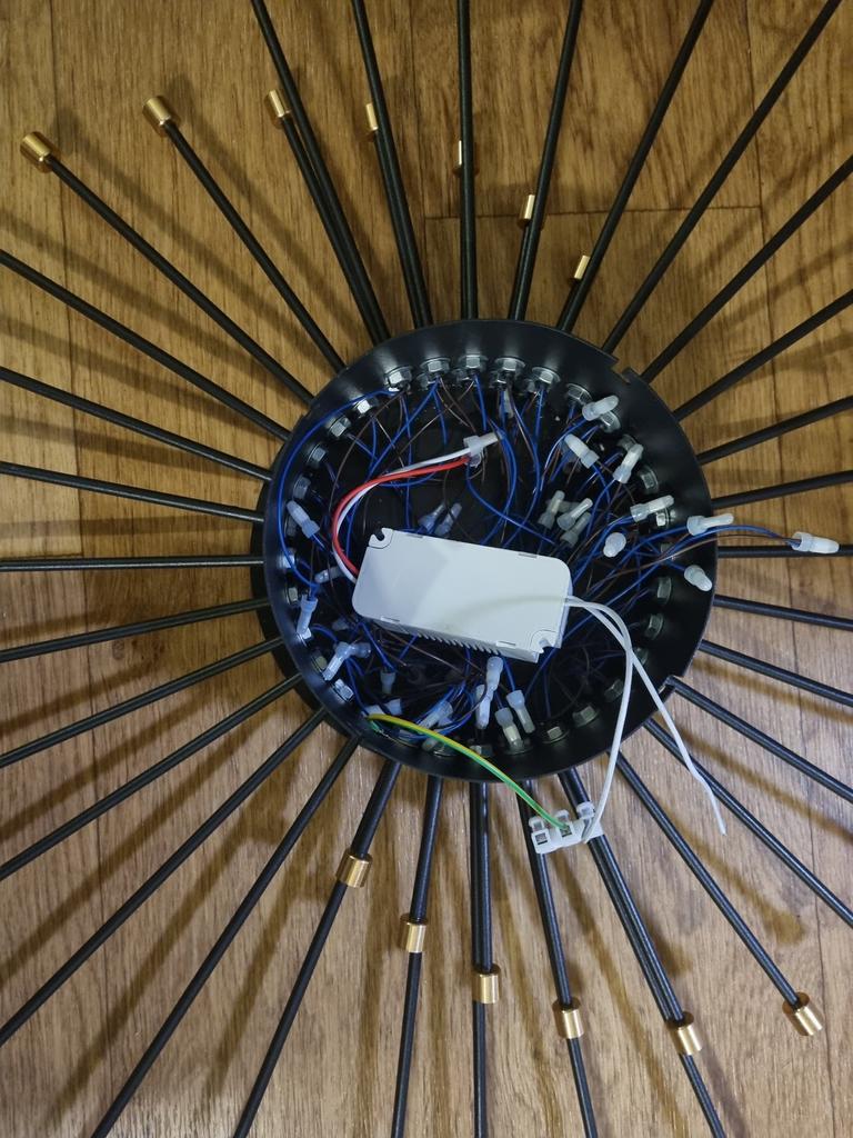 We got a chandelier. We like how it looks. There is a difficulty in assembling, it is very difficult to assemble the rays due to the painted thread, somewhere it was not possible to twist tightly.