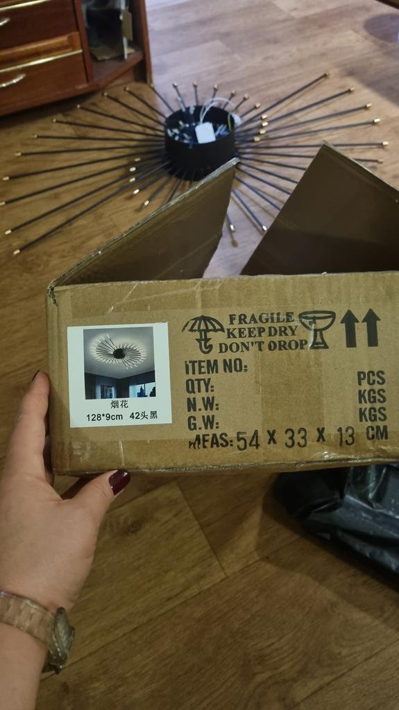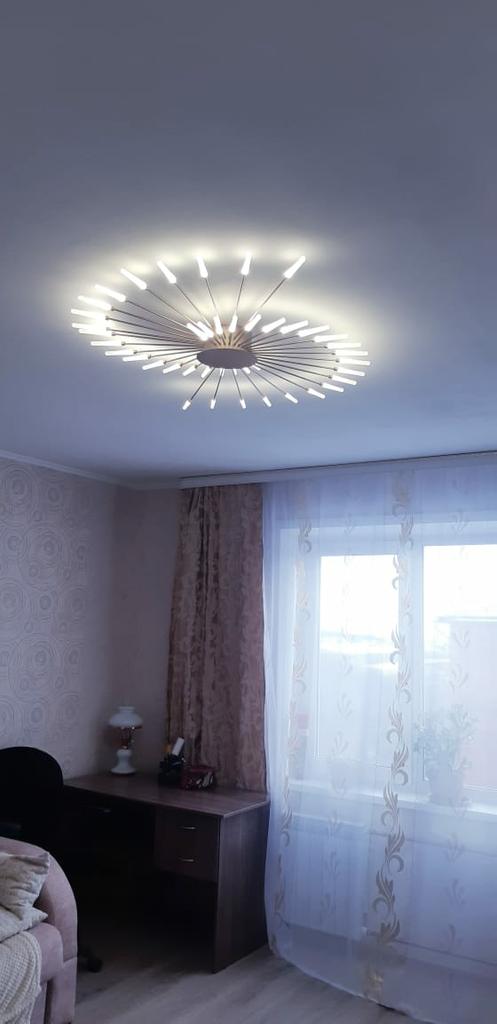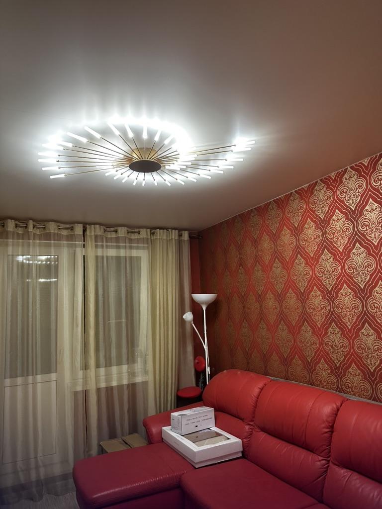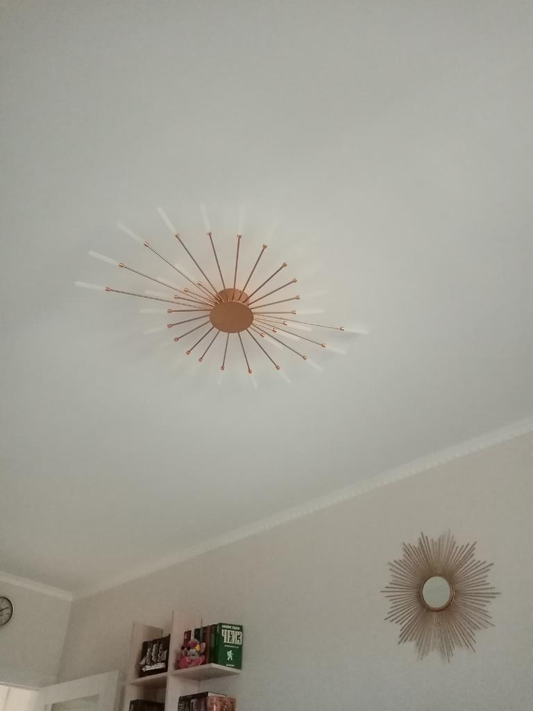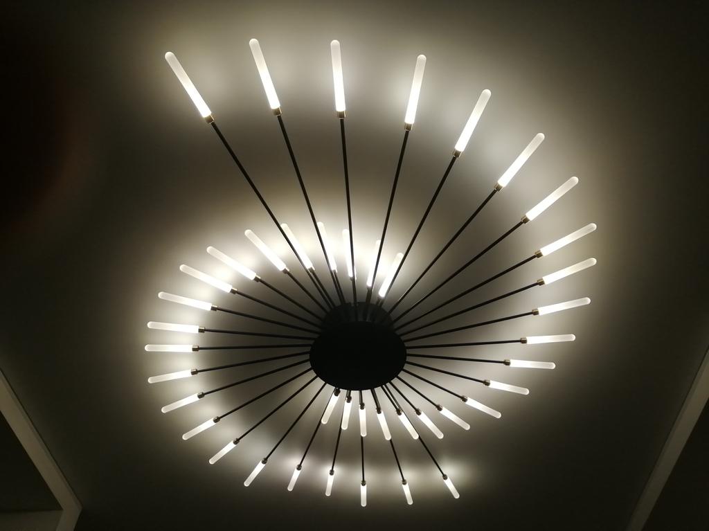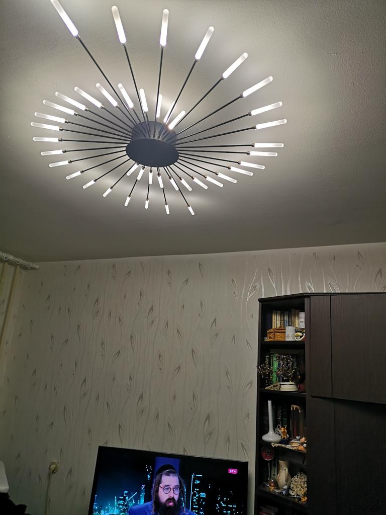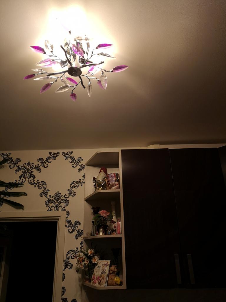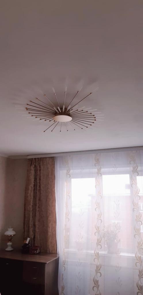 We got a chandelier. We like how it looks. There is a difficulty in assembling, it is very difficult to assemble the rays due to the painted thread, somewhere it was not possible to twist tightly.