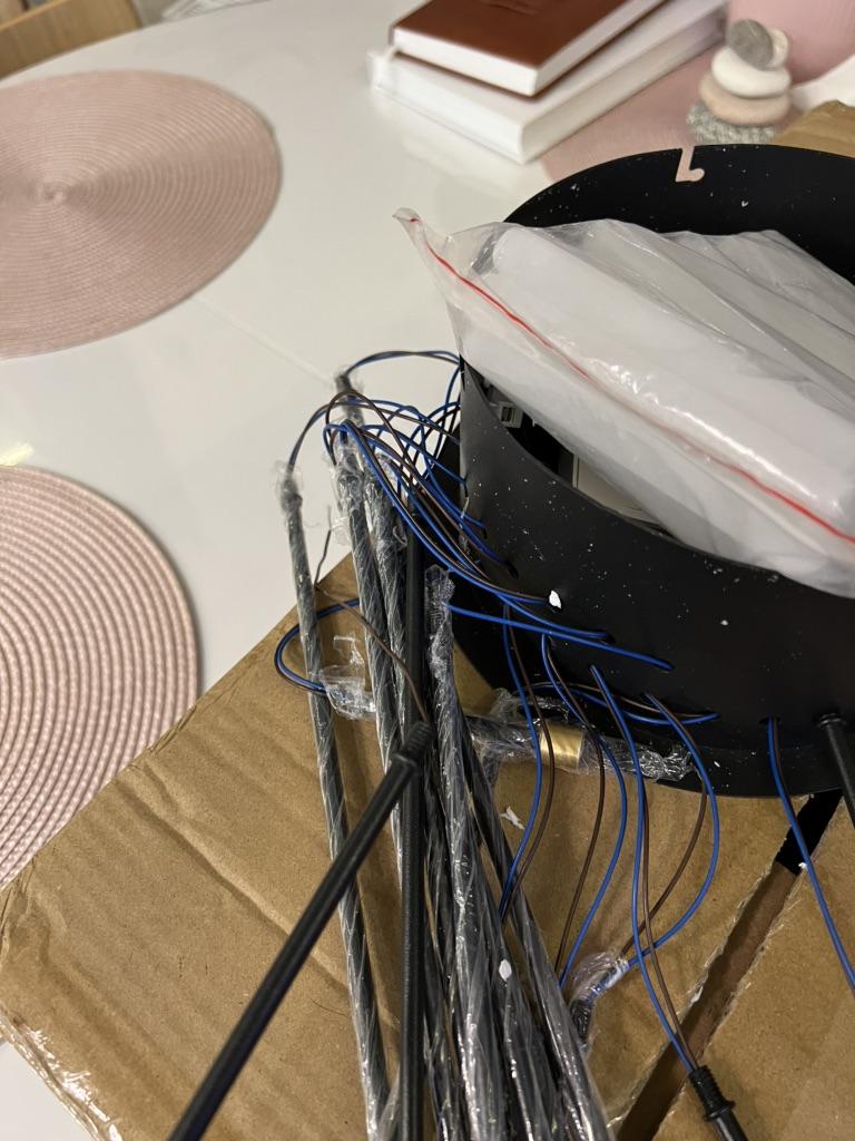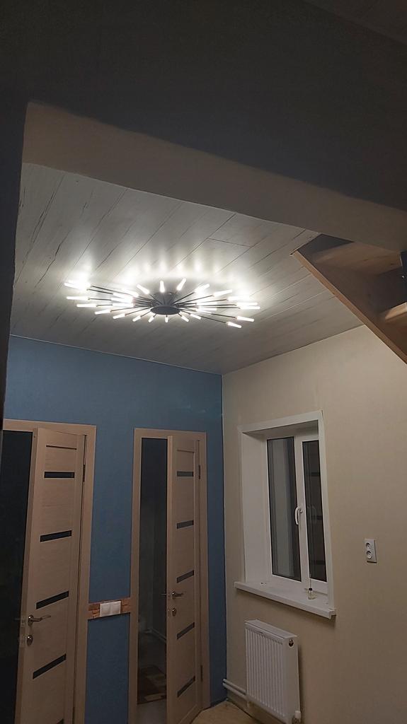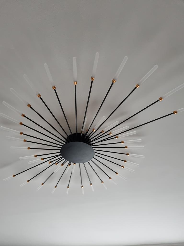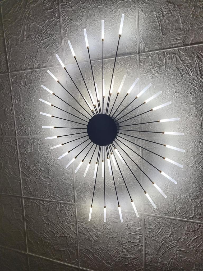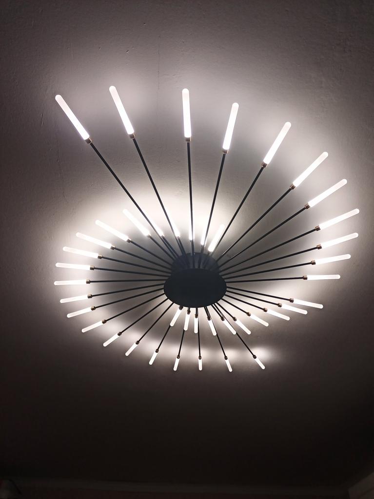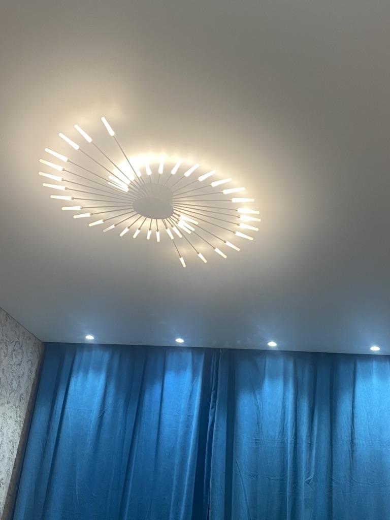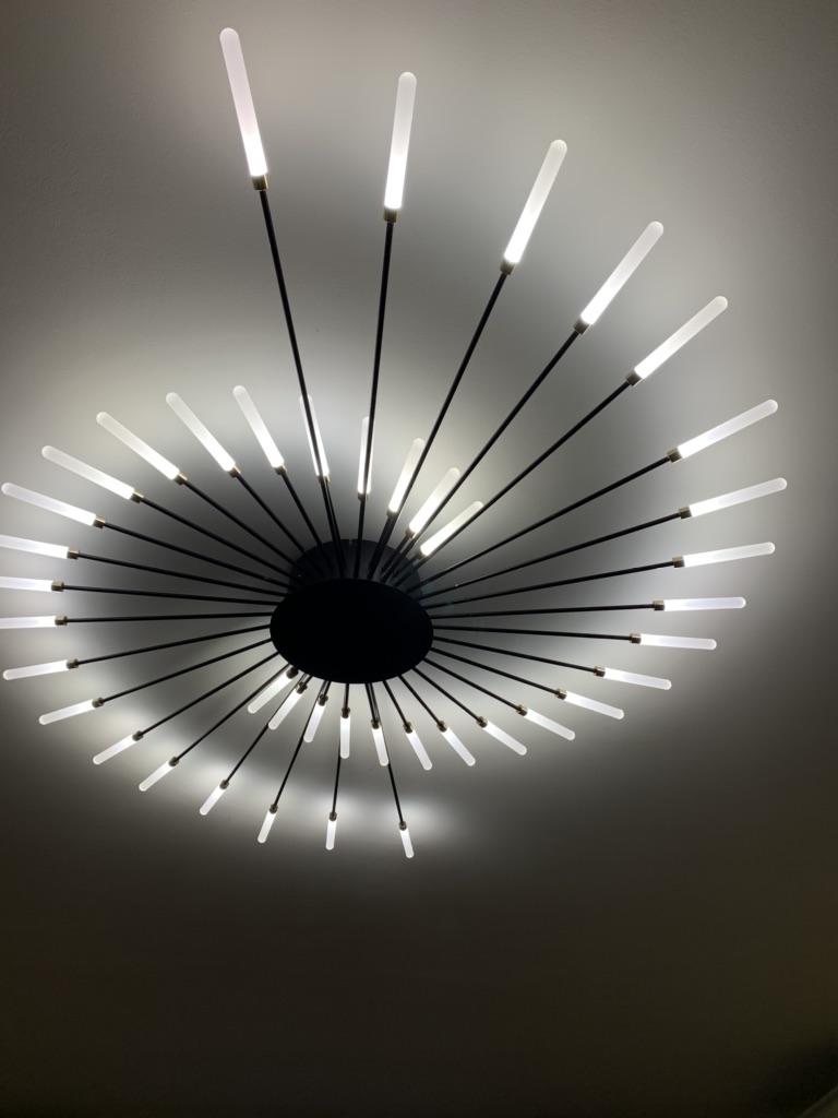 We got a chandelier. We like how it looks. There is a difficulty in assembling, it is very difficult to assemble the rays due to the painted thread, somewhere it was not possible to twist tightly.