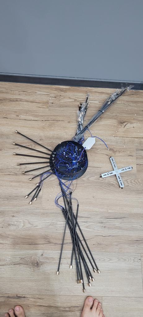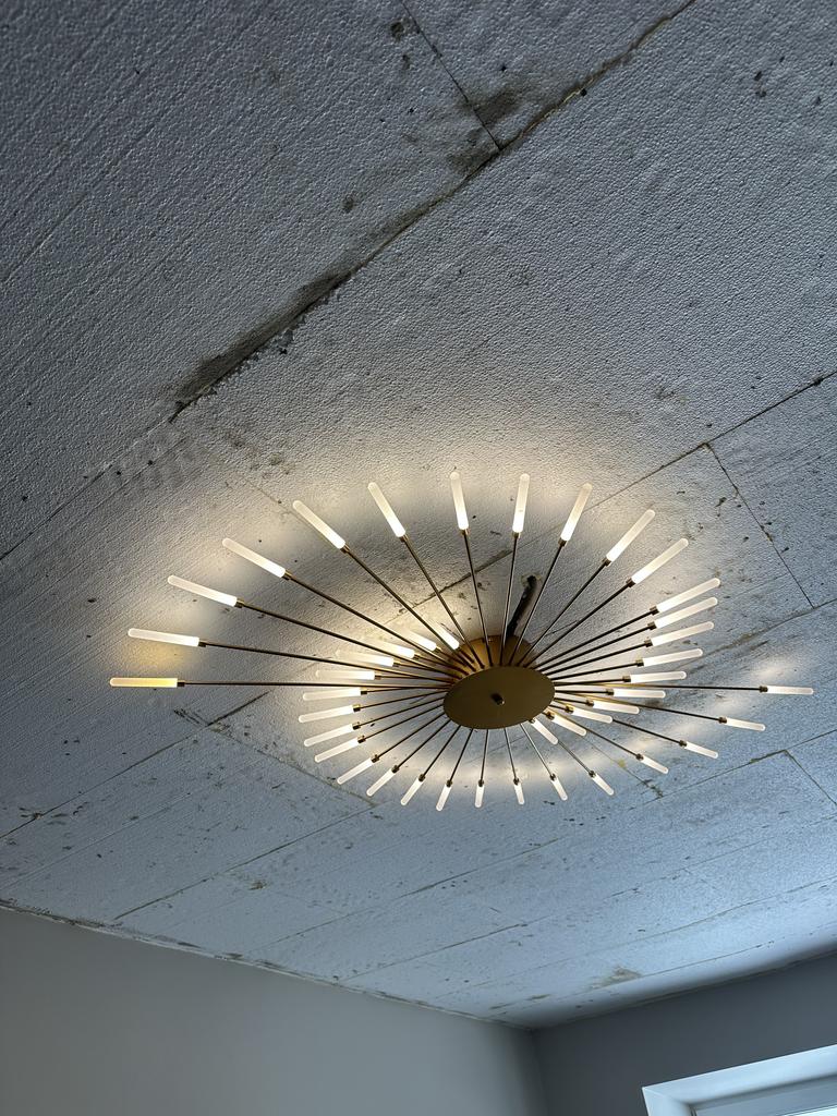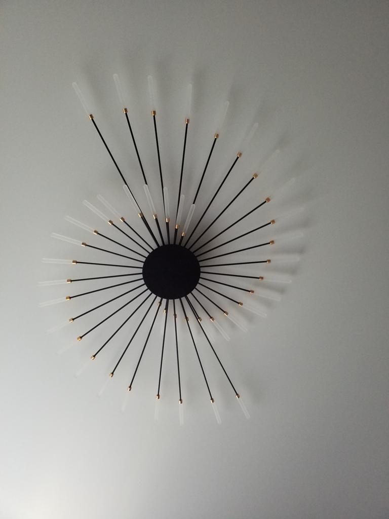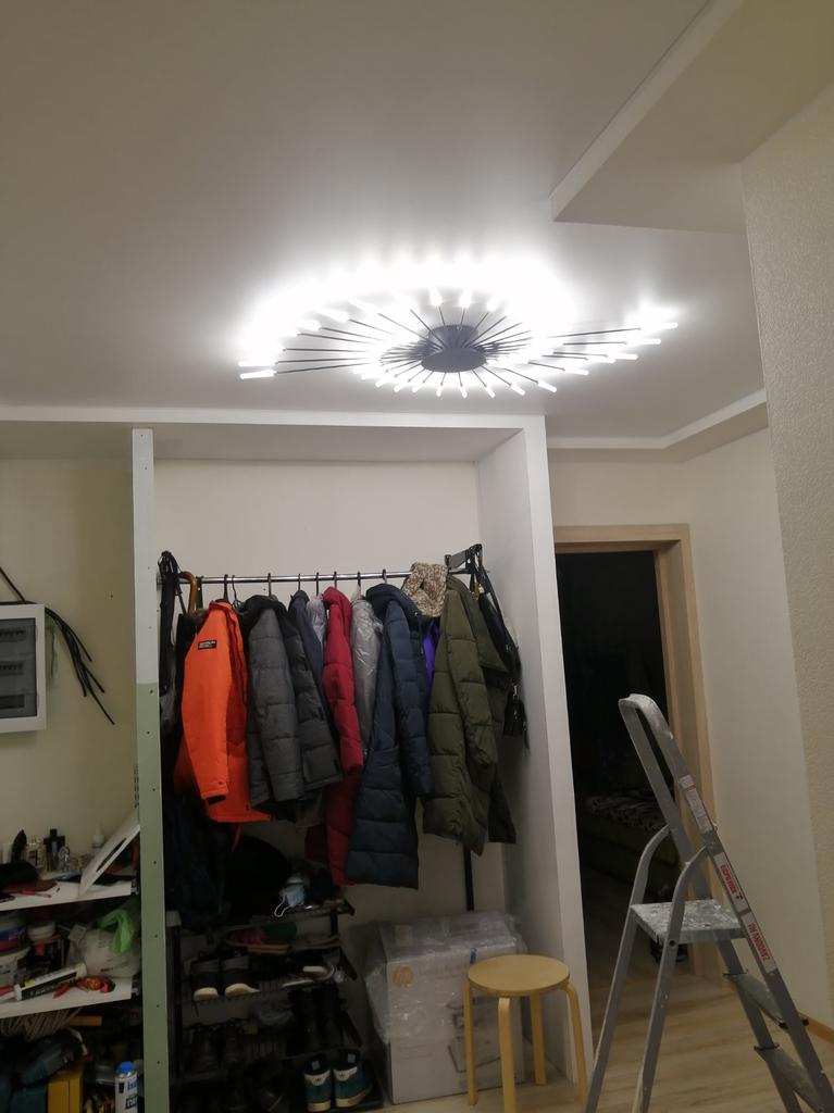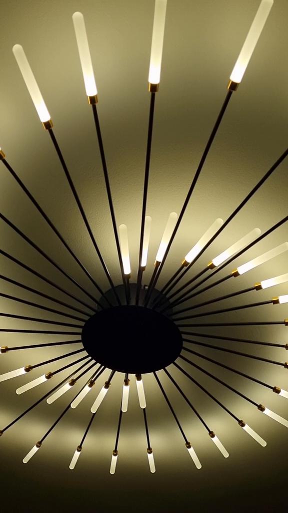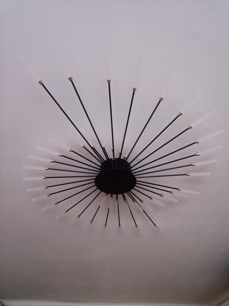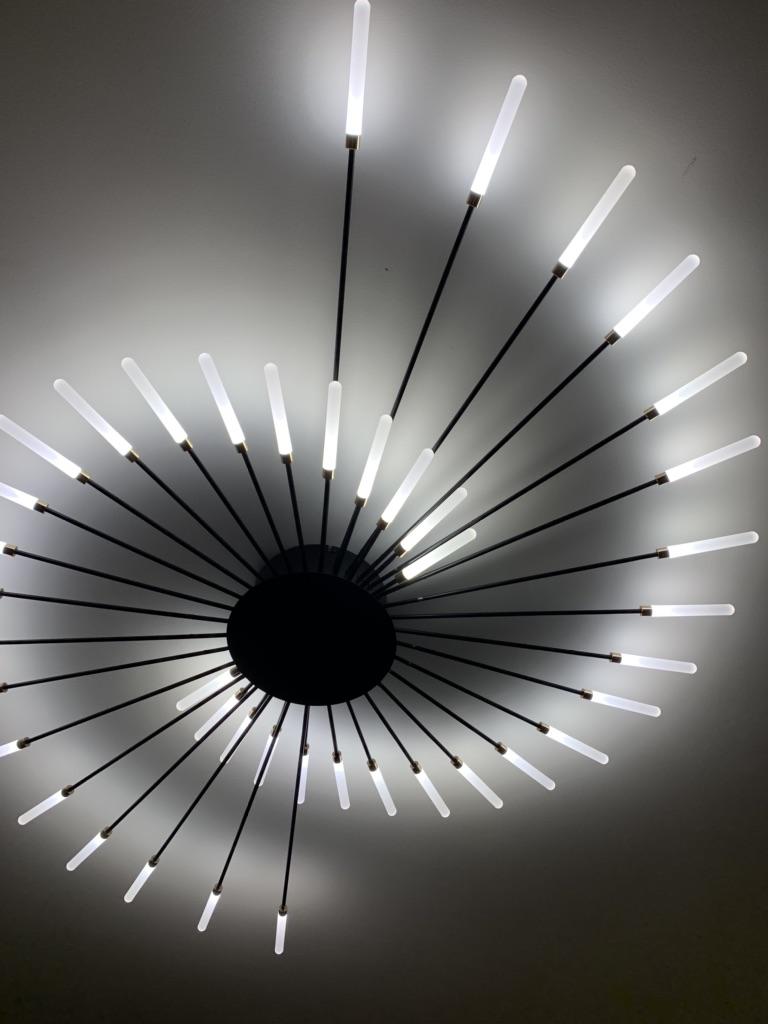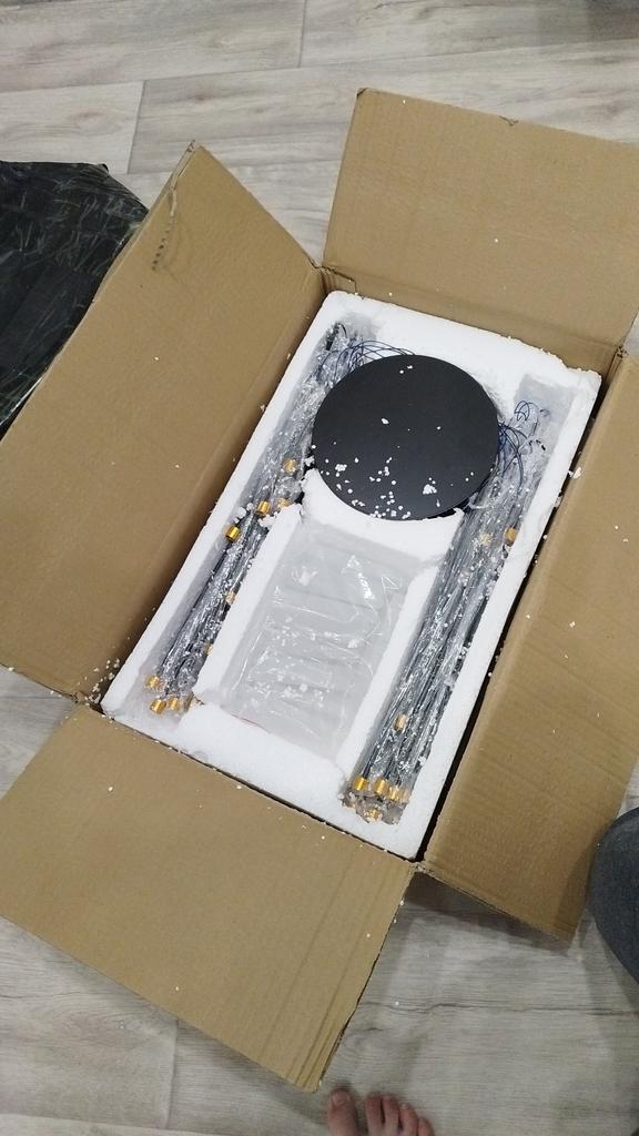 We got a chandelier. We like how it looks. There is a difficulty in assembling, it is very difficult to assemble the rays due to the painted thread, somewhere it was not possible to twist tightly.