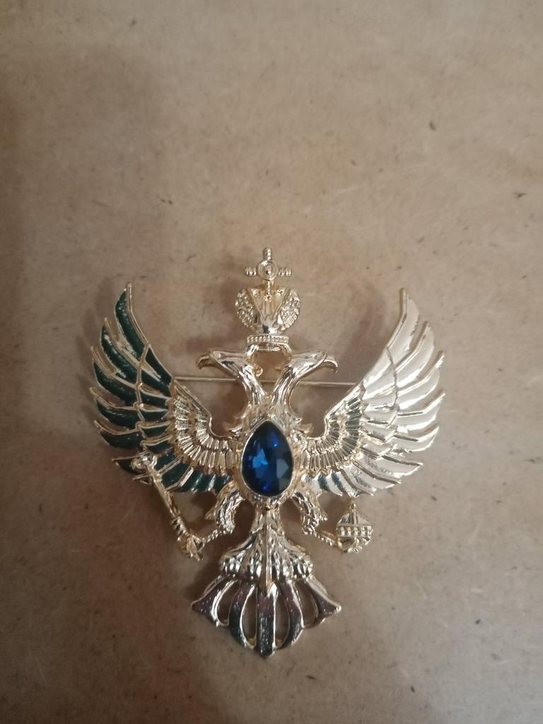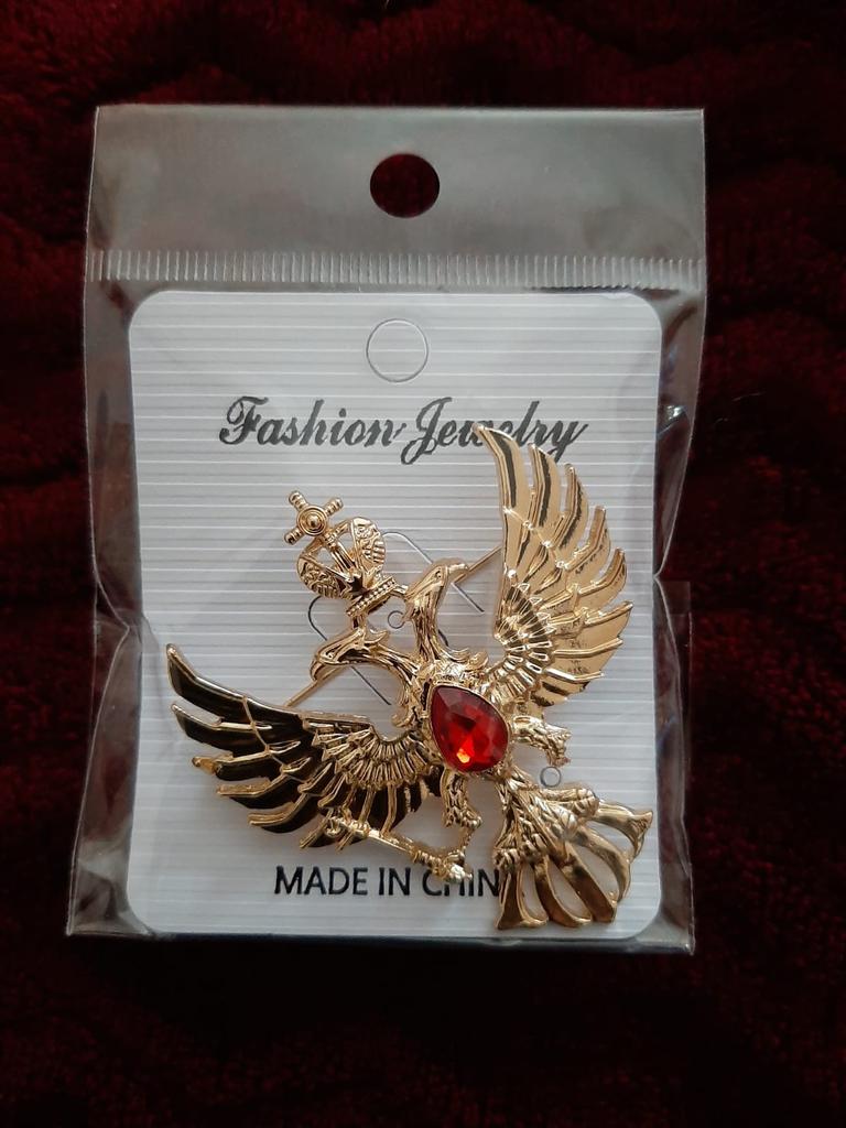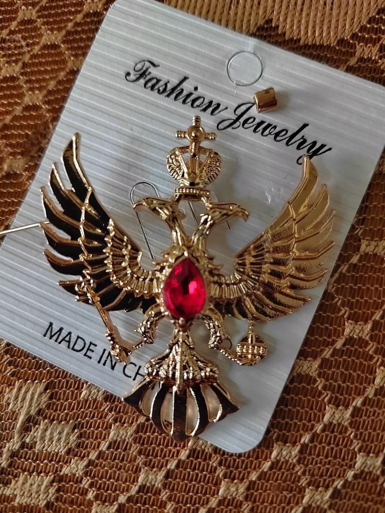 Retro Double-headed Eagle Russian National Emblem Brooches Antique Gold Color Crystal Badge Lapel Pin Women Men Clothes Suit Jewelry Clips