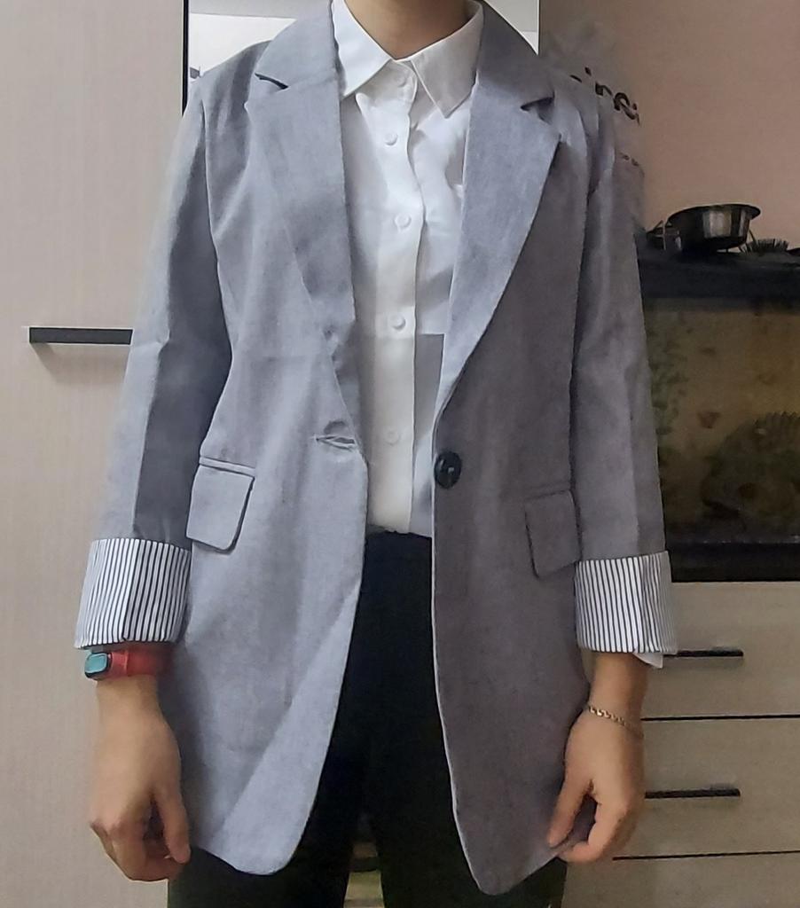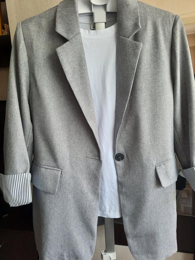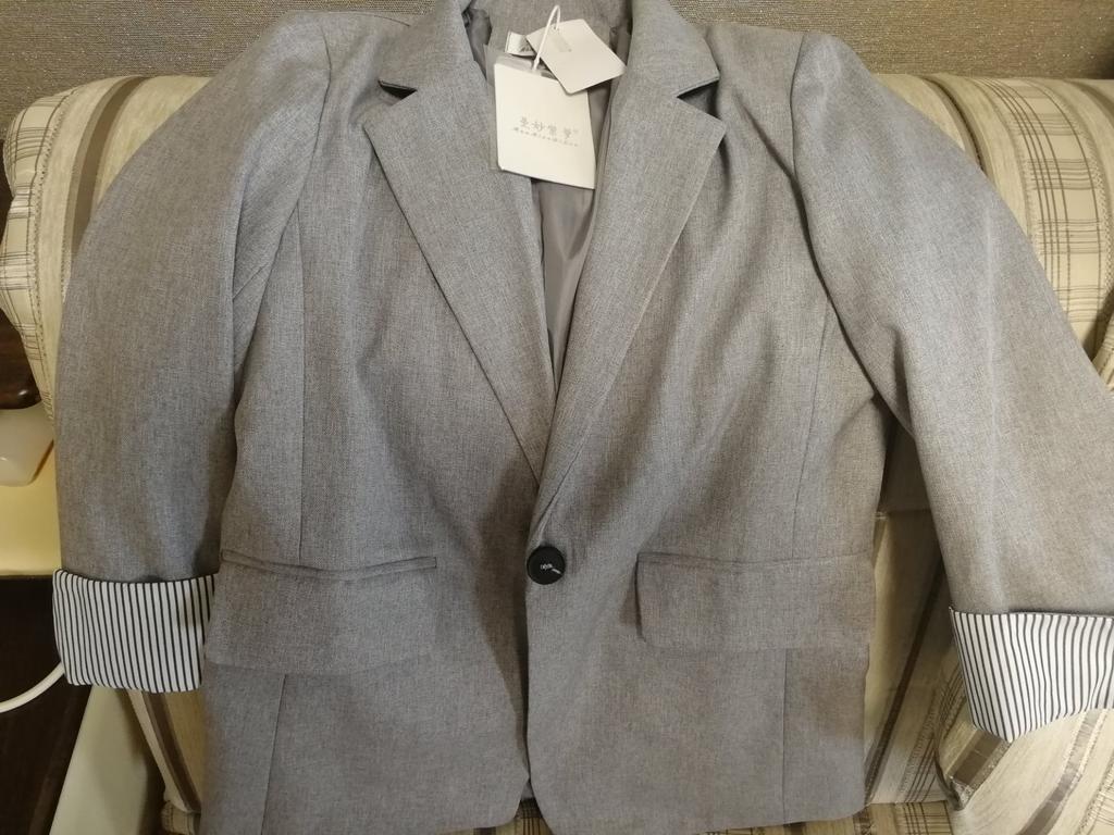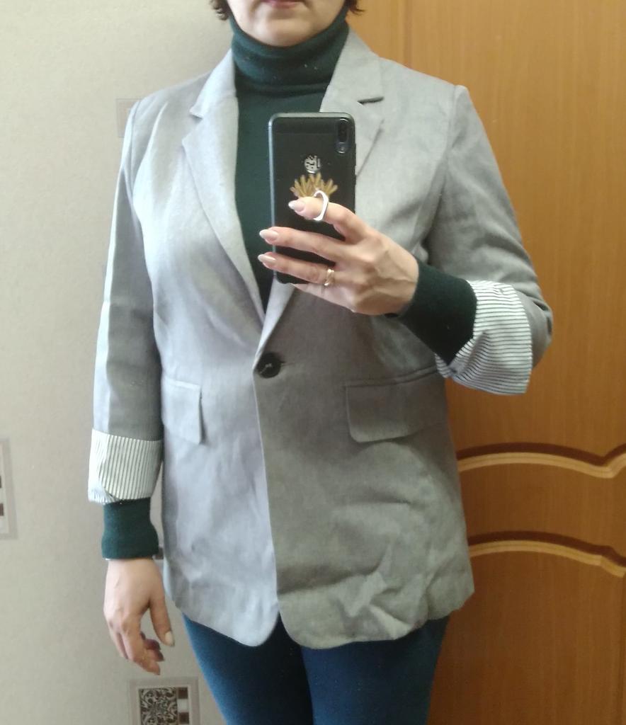 Great jacket. Very good quality, no threads or smell. The size fit perfectly. The fabric is thick. The sleeves are not full length, the pockets are not fake. Neat seams and lining. There are shoulder pads. I am very pleased with the product, I recommend it.