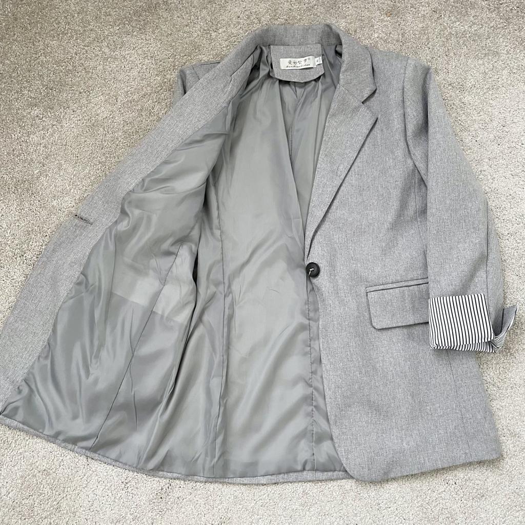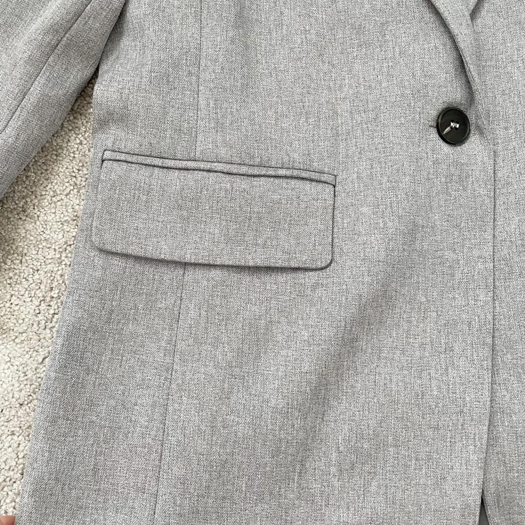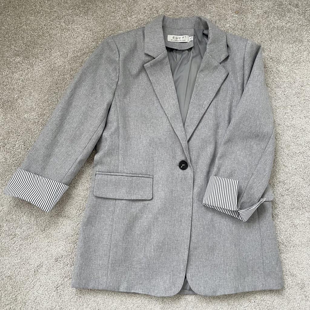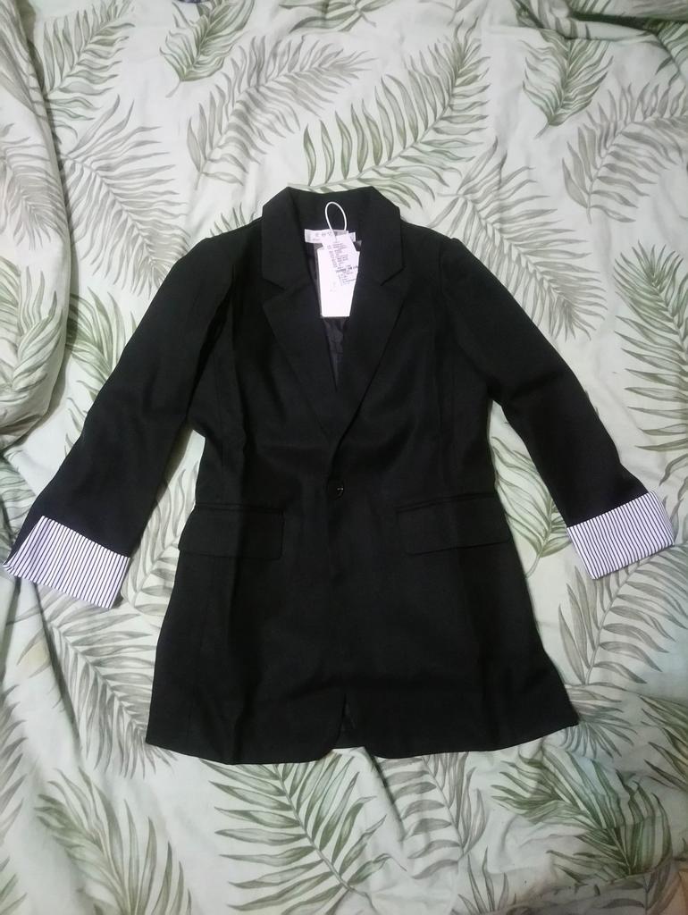 Great jacket. Very good quality, no threads or smell. The size fit perfectly. The fabric is thick. The sleeves are not full length, the pockets are not fake. Neat seams and lining. There are shoulder pads. I am very pleased with the product, I recommend it.