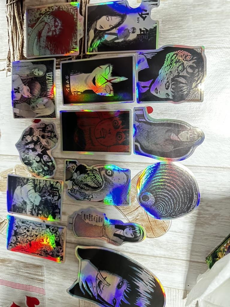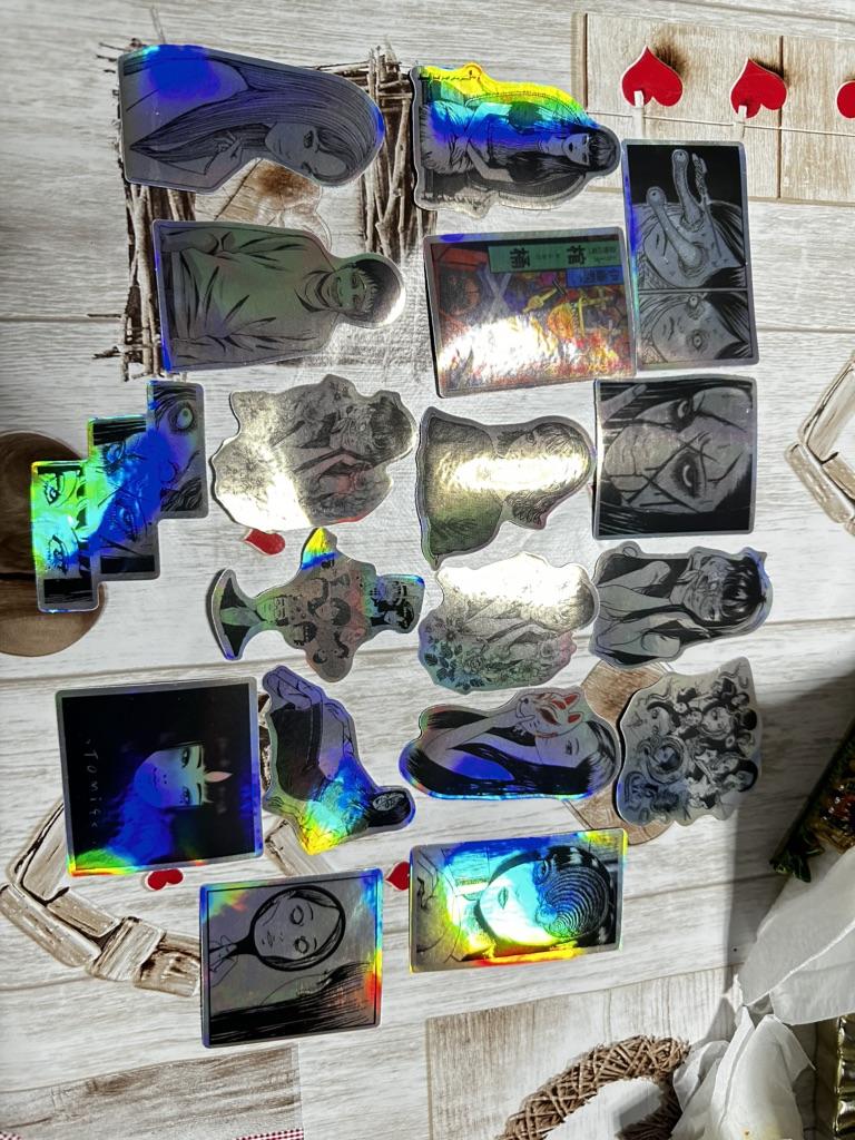 Stickers are of very good quality, correspond to the description. I am incredibly happy that I was not mistaken with this purchase. The only pity is that the character “Tomie” appears a little more here. I would like more of all the other characters