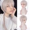 LUPU Men's Wig Lolita Anime Short Cosplay Wigs For Boy Synthetic Trailing Tail Fake False Hair Gray White Heat Resistant Fiber