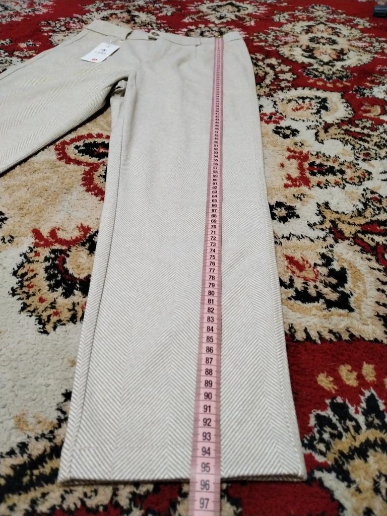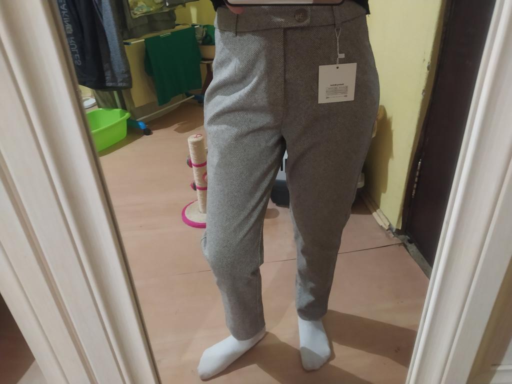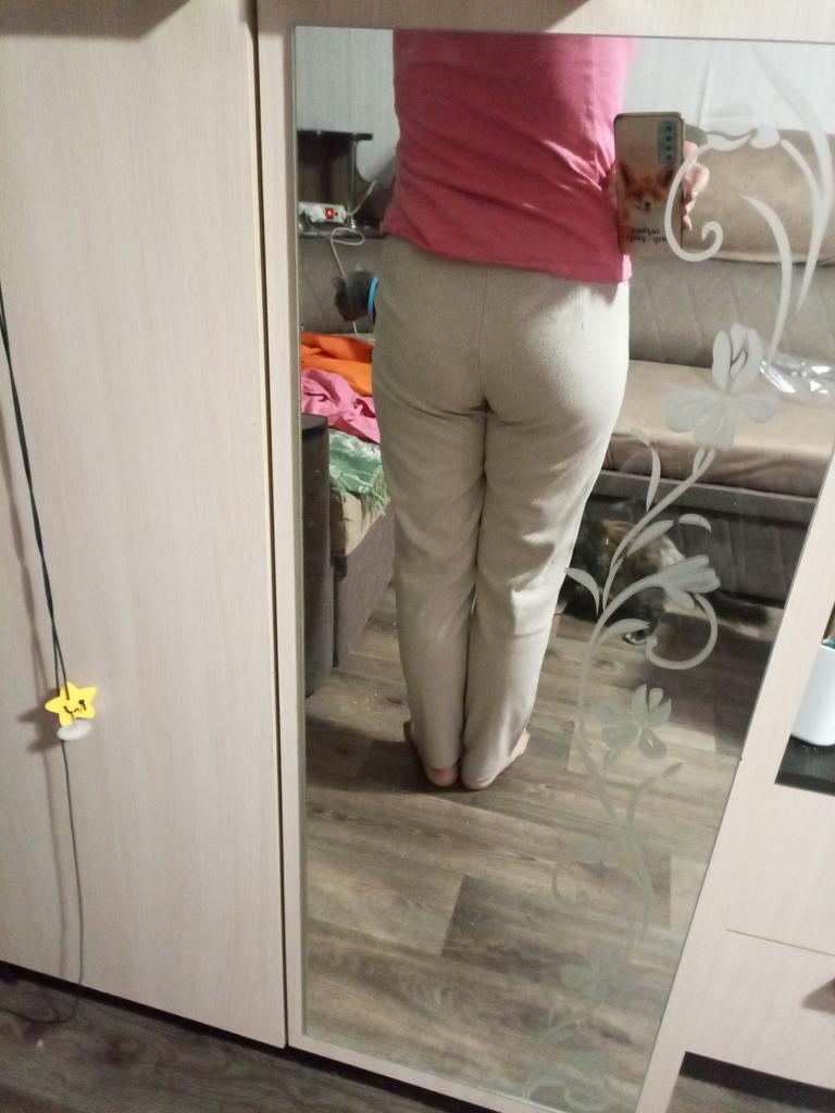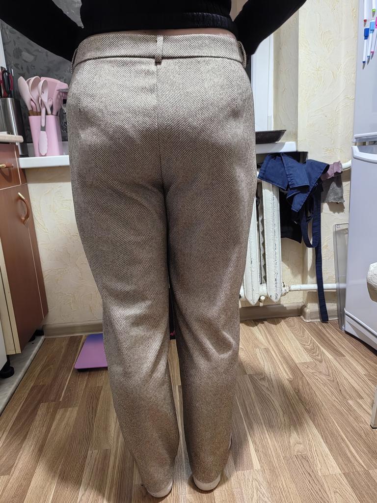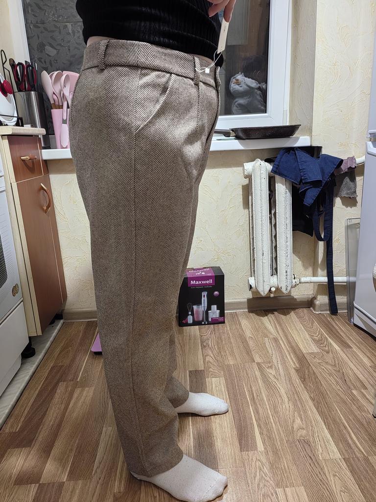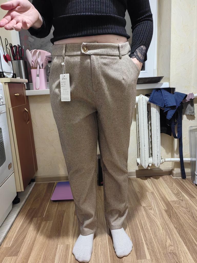 I like the pants, they match the description and photos on the site, they are factory sewn, there are tags on the belt, but they are paper, hand wash is indicated, maybe the fabric contains a small amount of wool, I think it is more polyester, the fabric composition is not indicated on the tags, they are pleasant to the touch and to the body, it is cool without tights at minus 2. They fit my size OT 88, OB 108, height 168 very well, but the length of the pants is 1 cm less, and one leg is 2 cm shorter. The support service refunded half the price, the seamstress corrected it, I wear it with pleasure. Thank you, Jum, thank you support service.