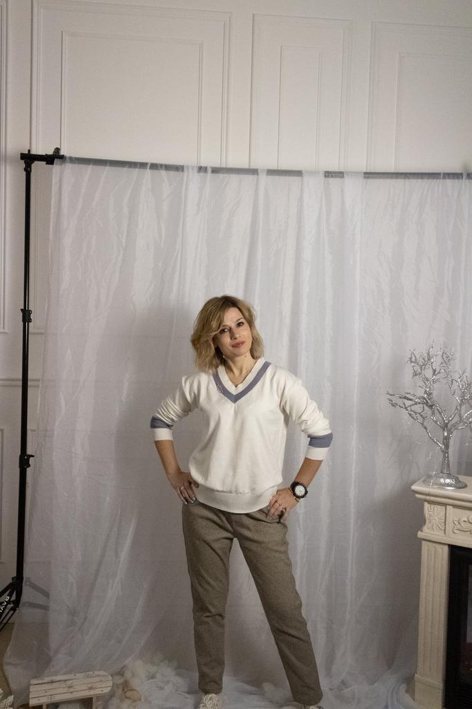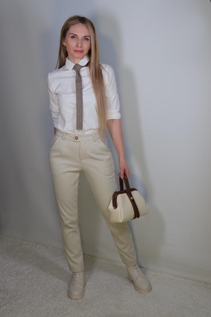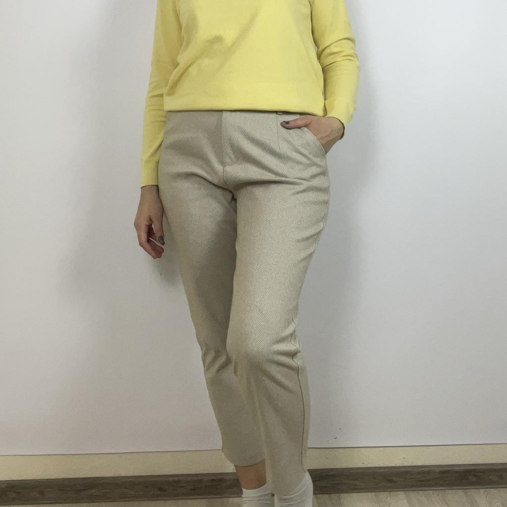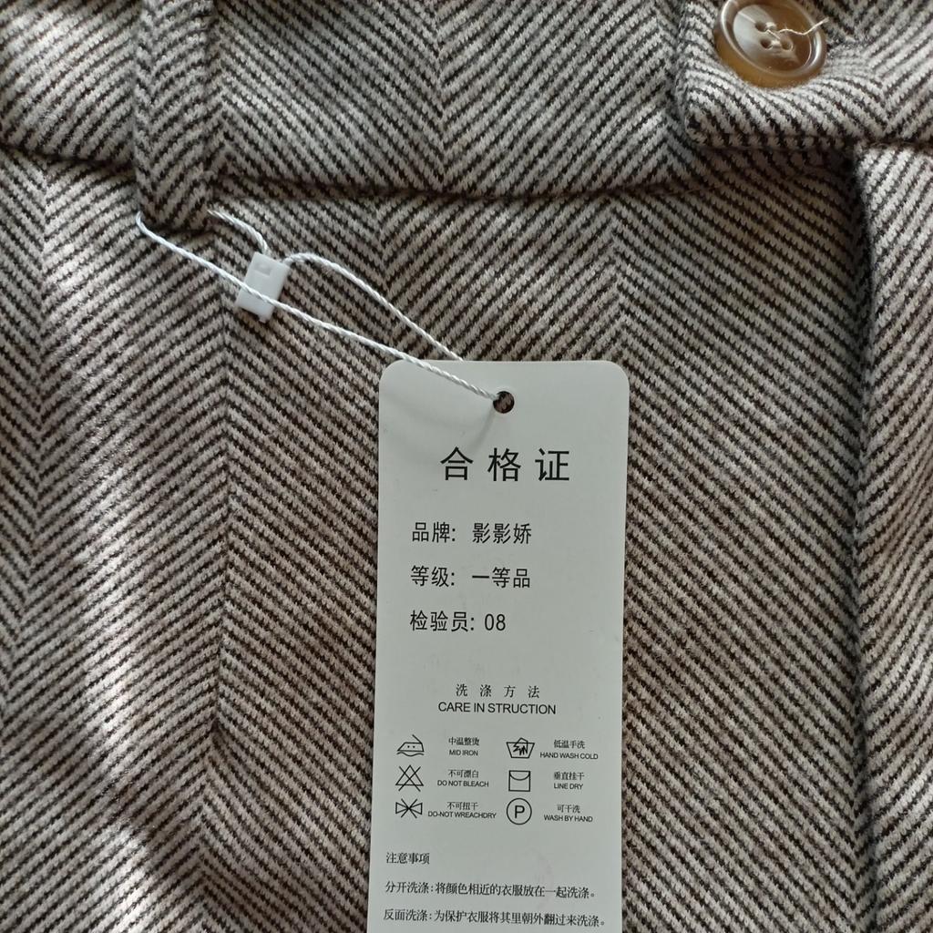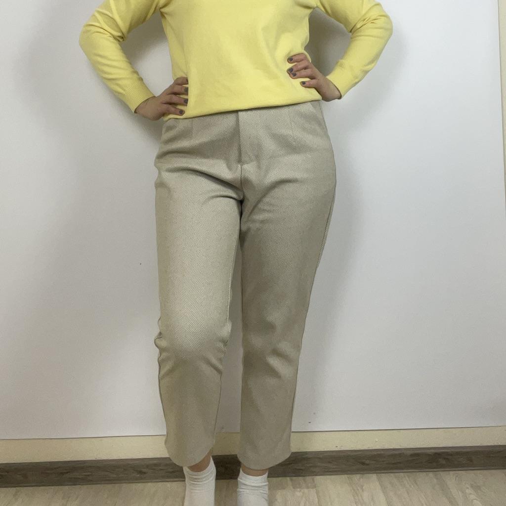 I like the pants, they match the description and photos on the site, they are factory sewn, there are tags on the belt, but they are paper, hand wash is indicated, maybe the fabric contains a small amount of wool, I think it is more polyester, the fabric composition is not indicated on the tags, they are pleasant to the touch and to the body, it is cool without tights at minus 2. They fit my size OT 88, OB 108, height 168 very well, but the length of the pants is 1 cm less, and one leg is 2 cm shorter. The support service refunded half the price, the seamstress corrected it, I wear it with pleasure. Thank you, Jum, thank you support service.