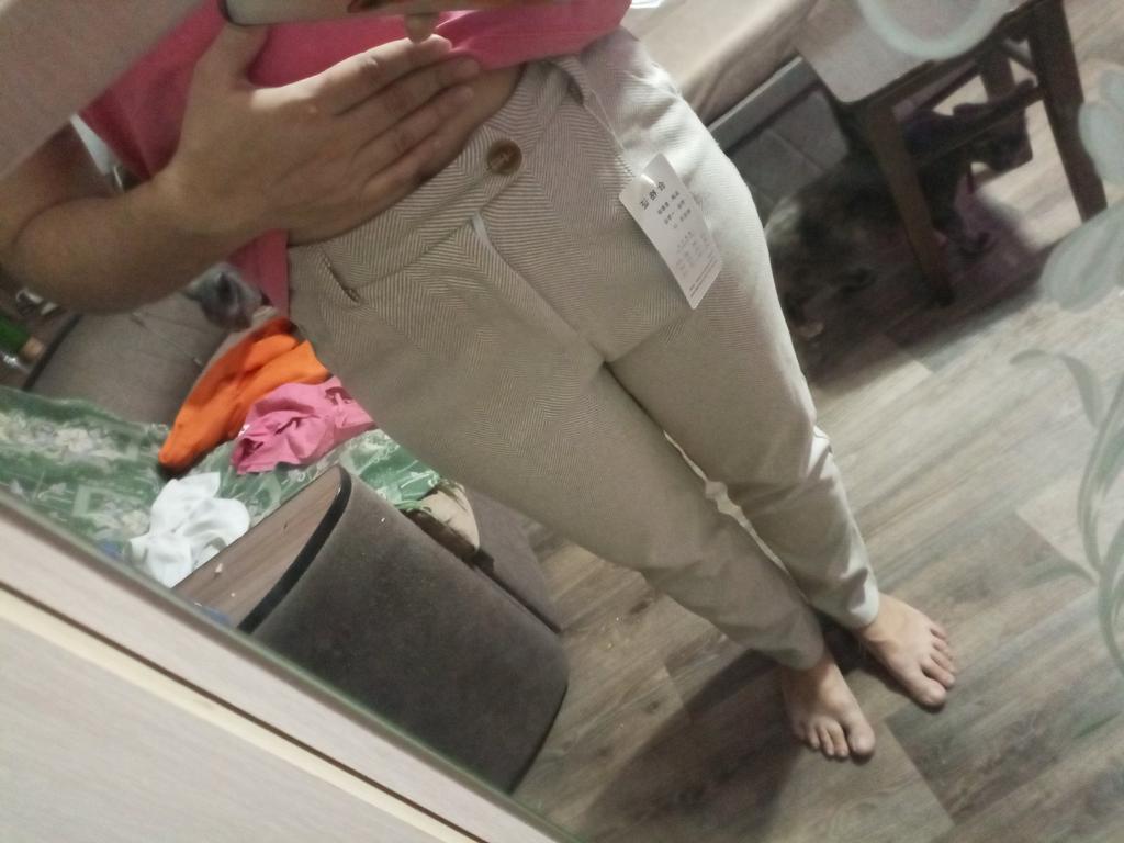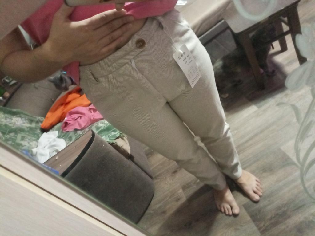 The trousers are pleasant, sewn neatly, although the loop needs to be processed better and another button or hook needs to be sewn on, but not everyone knows this!
