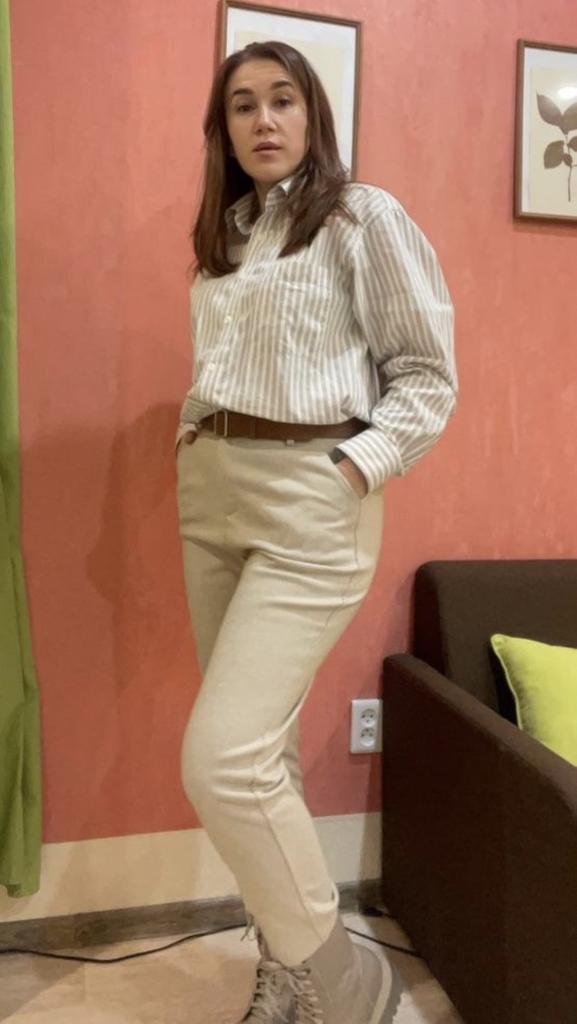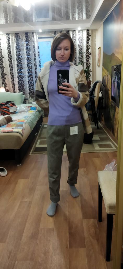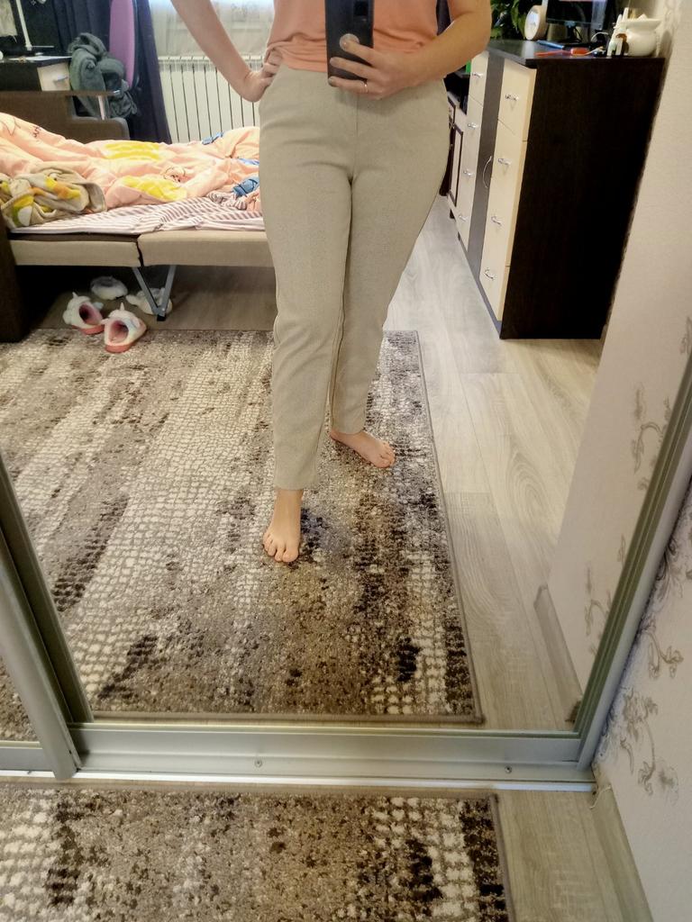I am taking a second pair, but one size larger. The first ones were light, in size L, I took them according to the table for OB-96 cm. I walked in them, they are pleasant to the body, warm. They look decent, but a little short for a height of 158 cm. That is why I took this darker pair one size larger. Looser (I'll take a belt), longer, I'm satisfied, thank you!