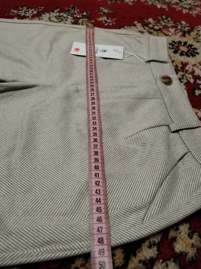 I wear size 44-46, the trousers are not tight, loose for about size 48, it is normal to wear with a belt and it is good that they are not tight, they look great. The length of the trousers is small, I am 159, they are below the ankle.