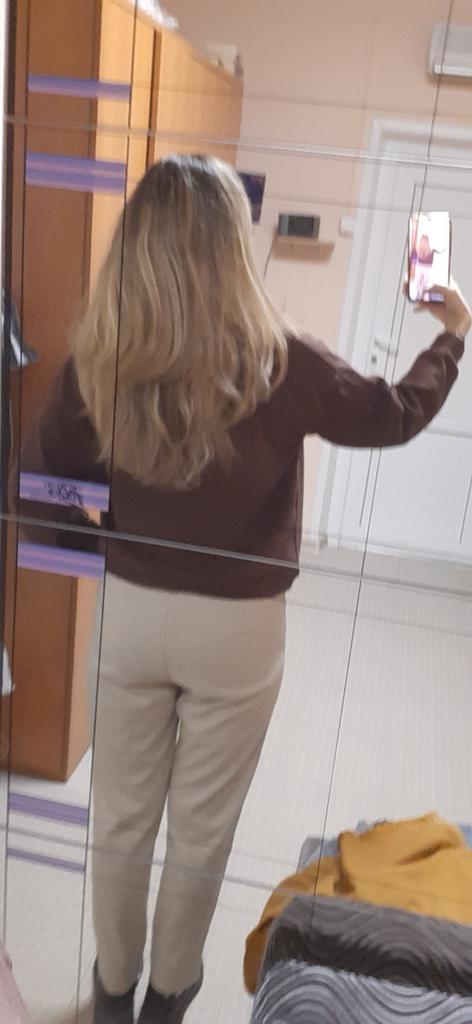 The fit of the trousers is not clear, the waist is wide, in the stomach area, it bubbles at the groin, because of this it wrinkles as if it is pulling, the color does not match, it is lighter, I do not recommend 👎