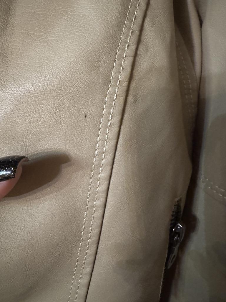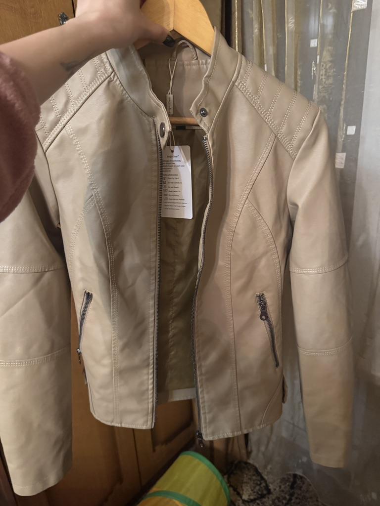 Hello 👋🏾 Received today faux leather jacket size M For measurements of 38. Normal size . Complete satisfaction, well packaged. Now the question is whether the imitation leather will last a long time! Not finding it peeled like bags 👜 or boots 👢 when you want to put them back on ! Thank you joom and sellers .