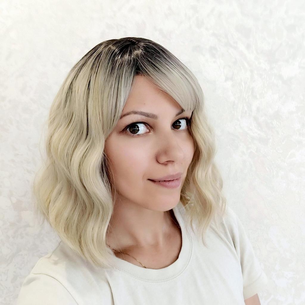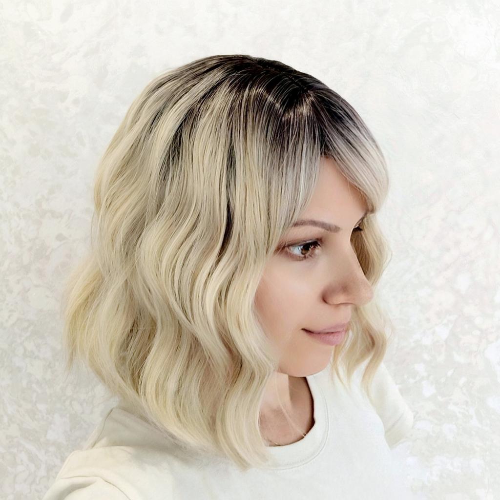 LISI HAIR Short Bob Wavy Hairstyle Ombre Blonde Shoulder Length Wig For Women Halloween Cosplay Synthetic Fiber