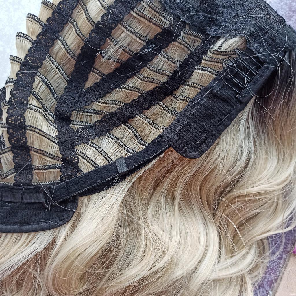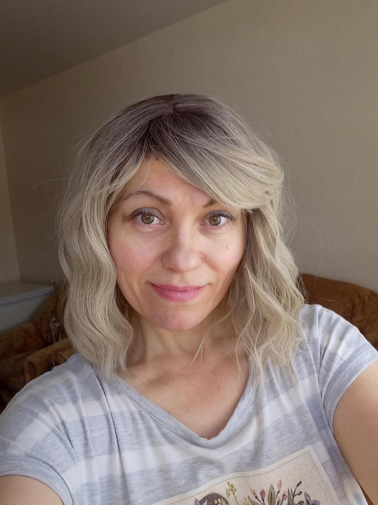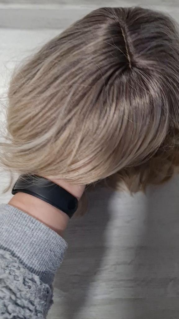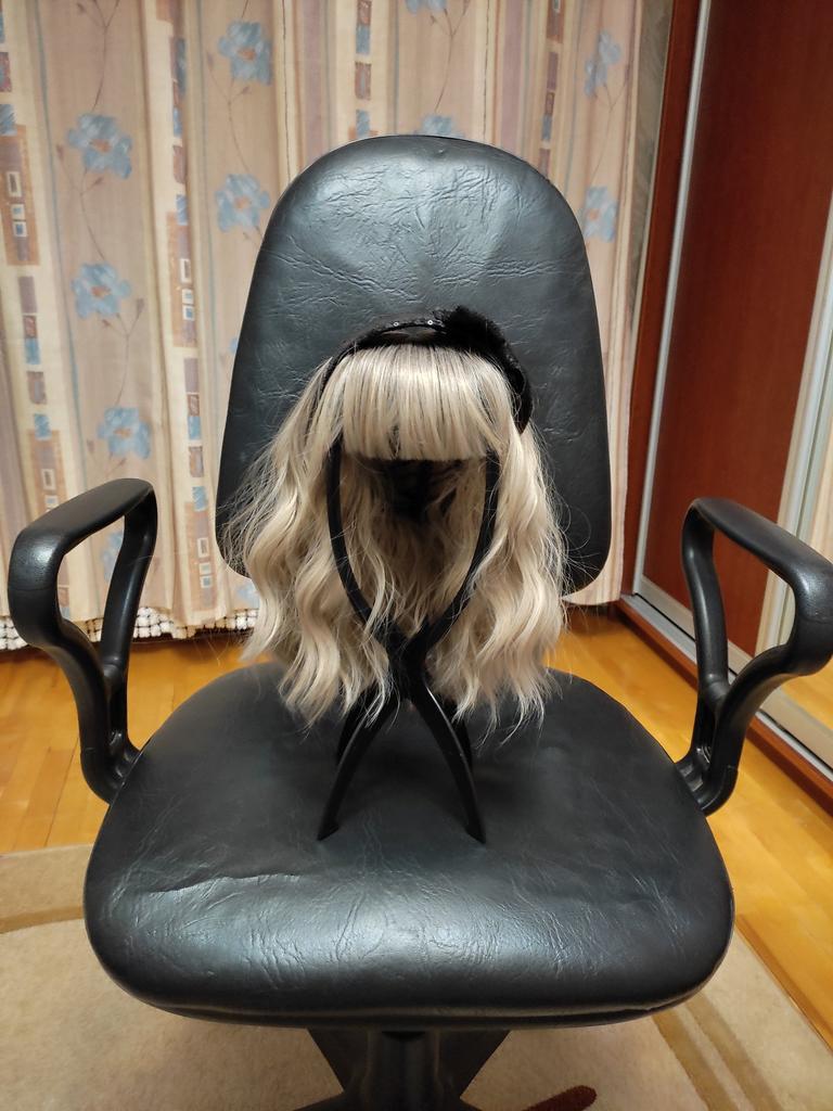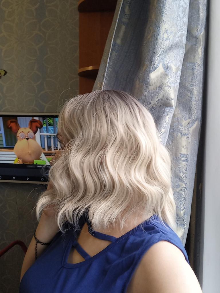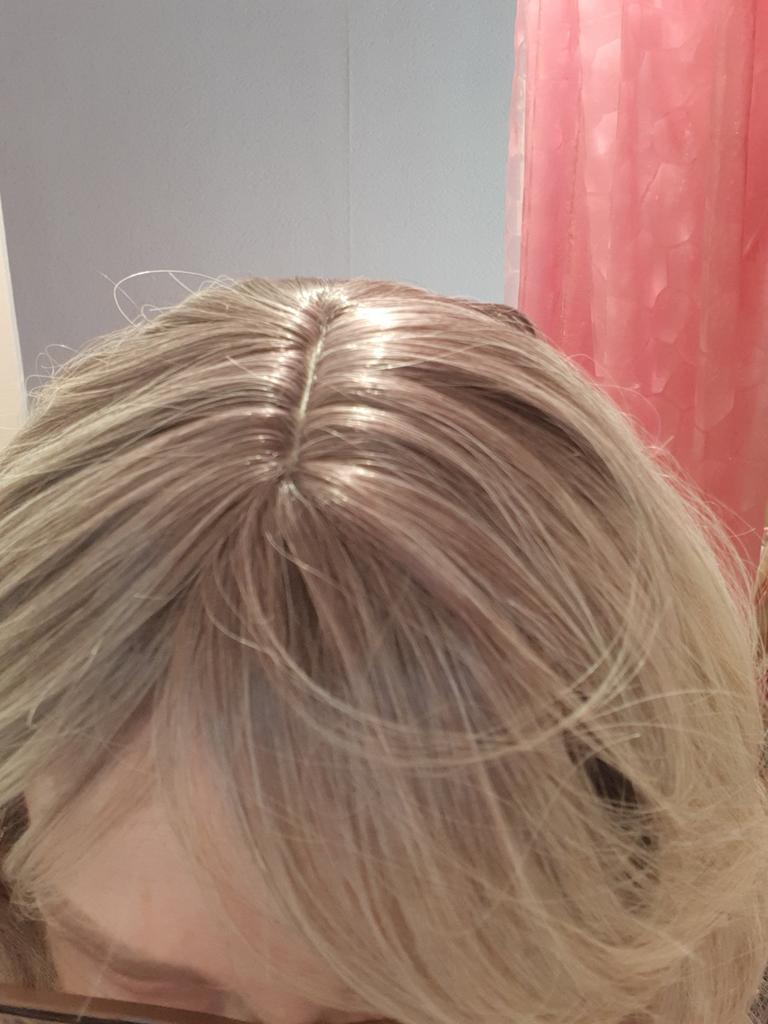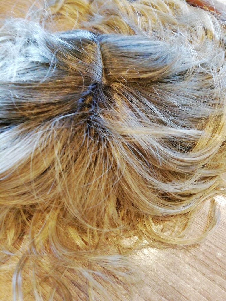 I received the parcel, the wig is pleasant to the touch, the hair looks like natural hair, good quality. The downside is that the hair falls out a lot. The top is jet black, I expected it to be lighter, the main color is a very beautiful blond. In general, the wig is not bad for experiments just right.)