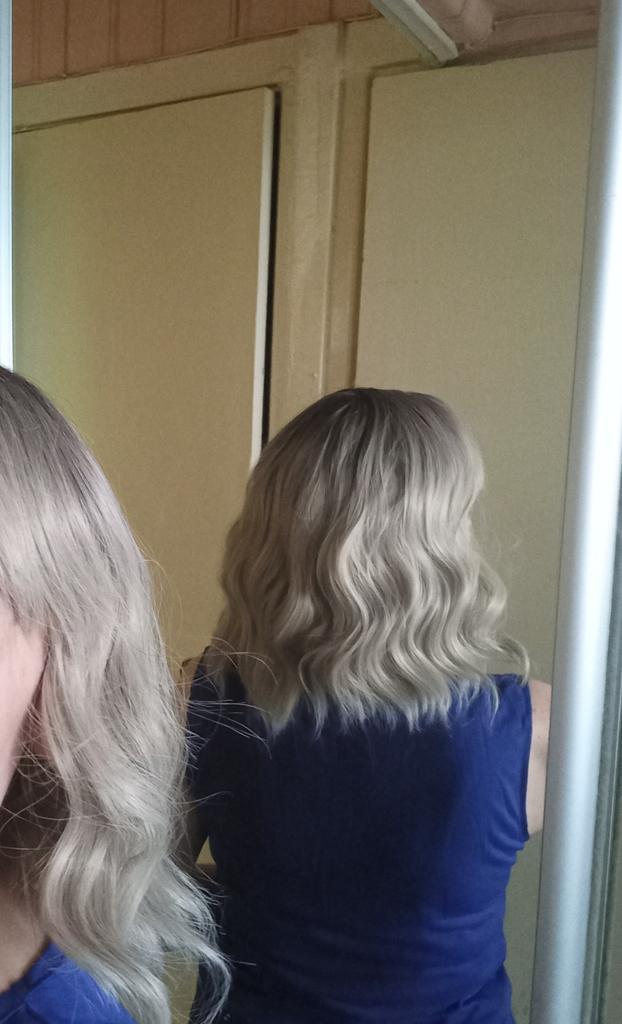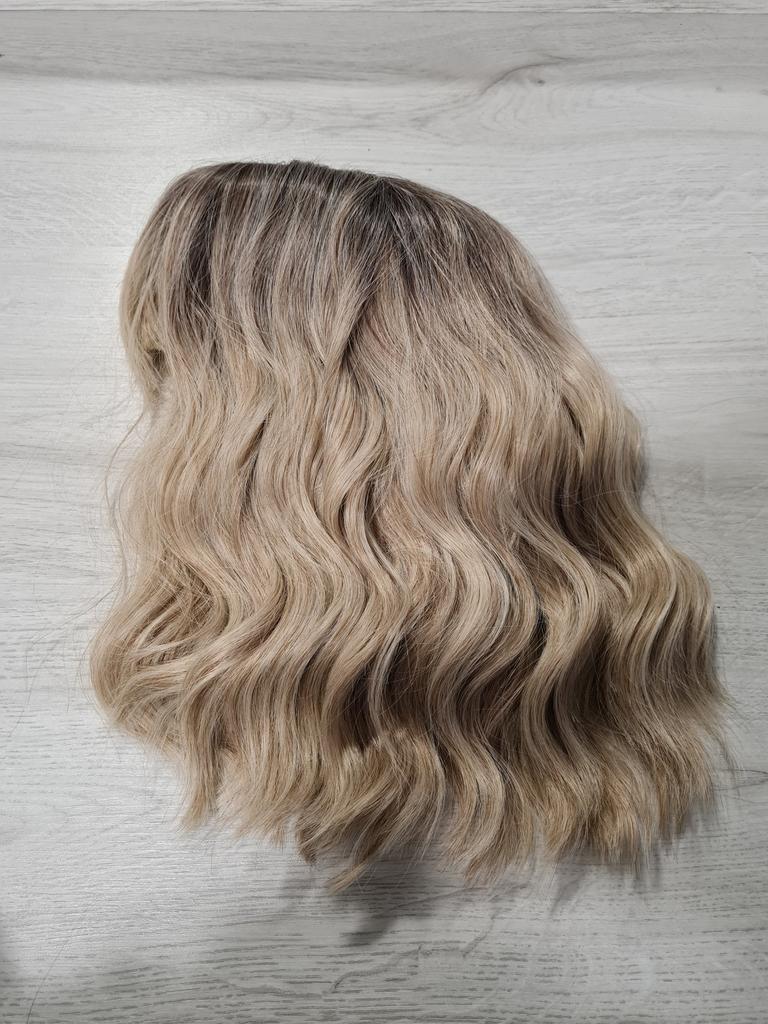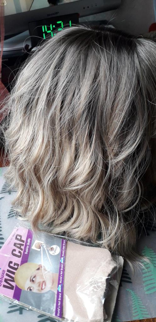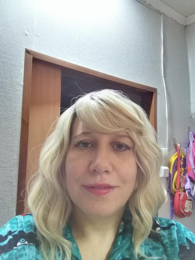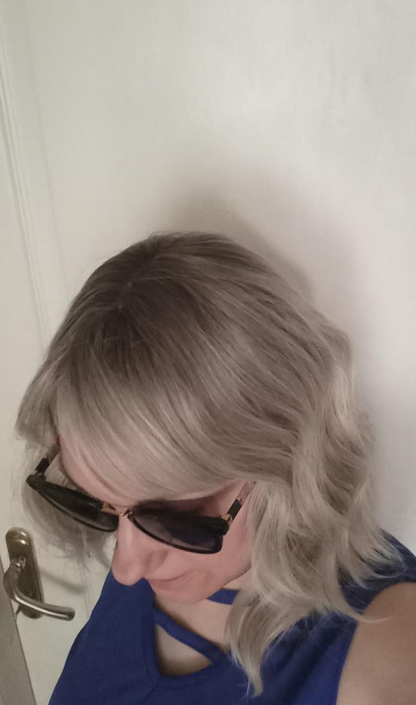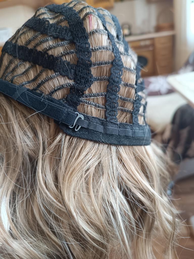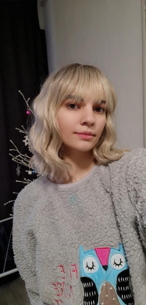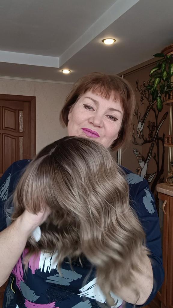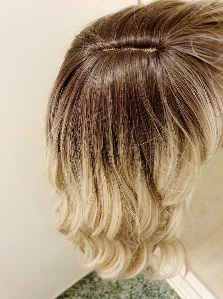 I received the parcel, the wig is pleasant to the touch, the hair looks like natural hair, good quality. The downside is that the hair falls out a lot. The top is jet black, I expected it to be lighter, the main color is a very beautiful blond. In general, the wig is not bad for experiments just right.)