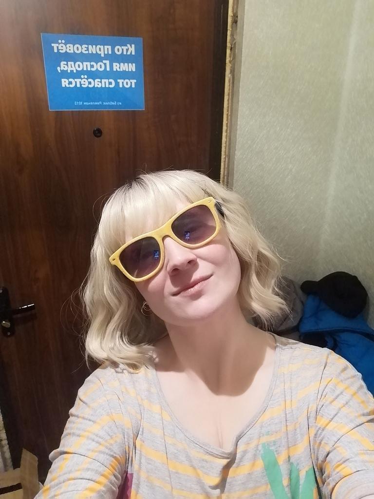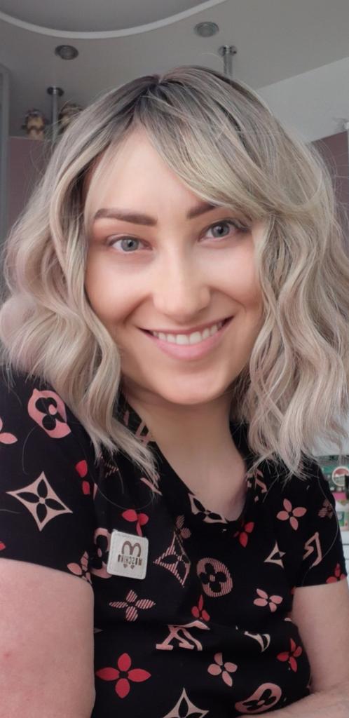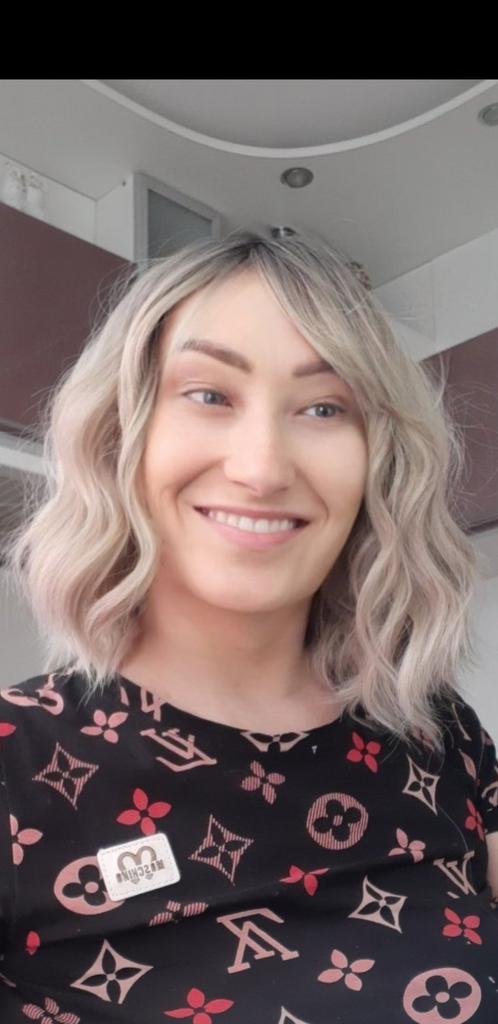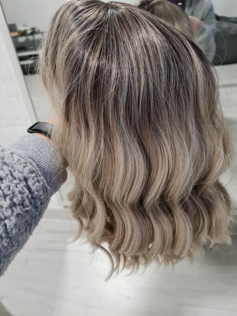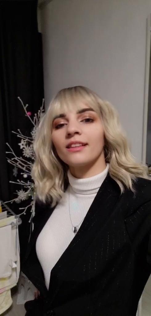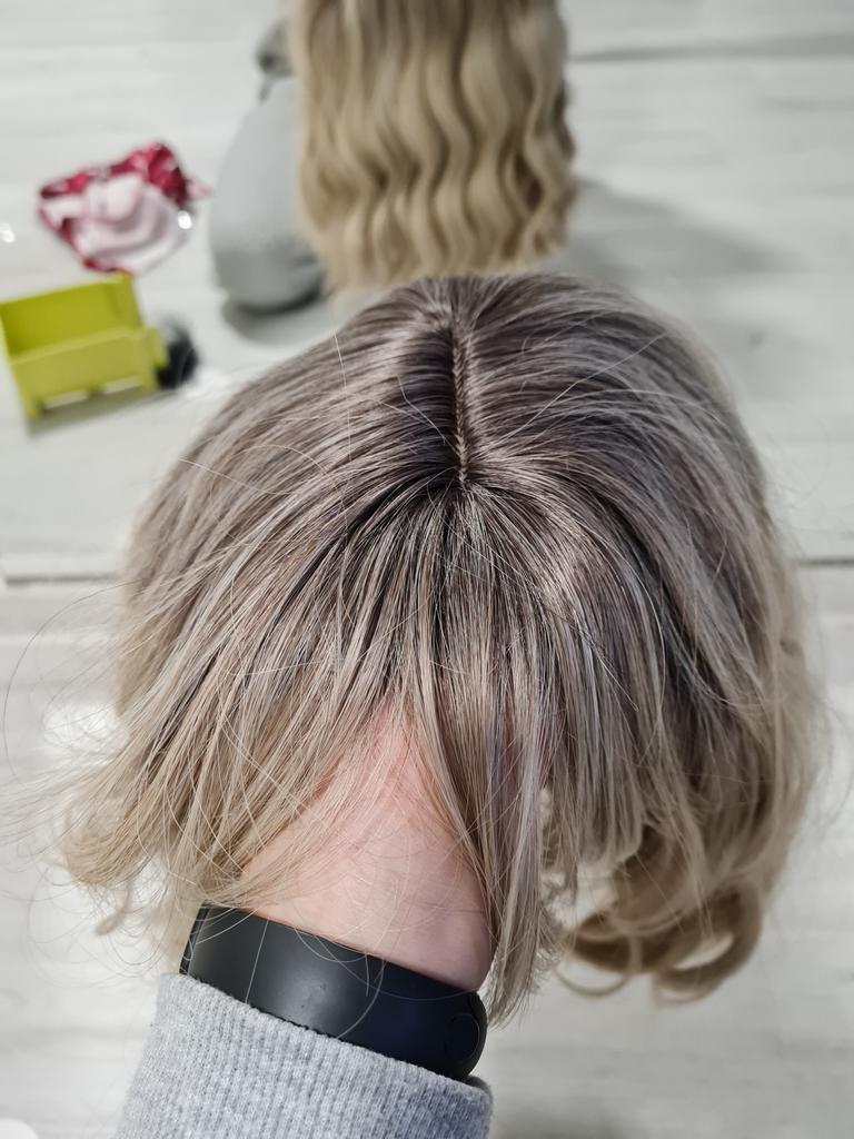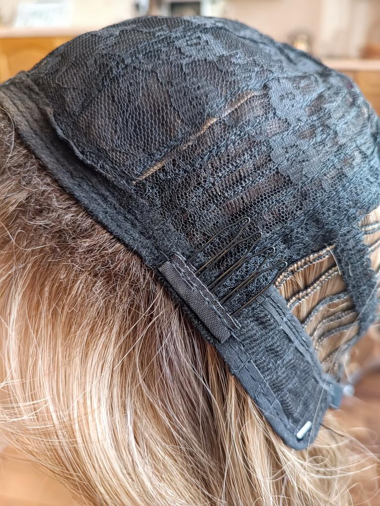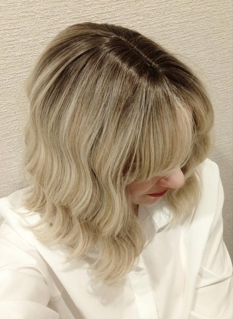 I received the parcel, the wig is pleasant to the touch, the hair looks like natural hair, good quality. The downside is that the hair falls out a lot. The top is jet black, I expected it to be lighter, the main color is a very beautiful blond. In general, the wig is not bad for experiments just right.)