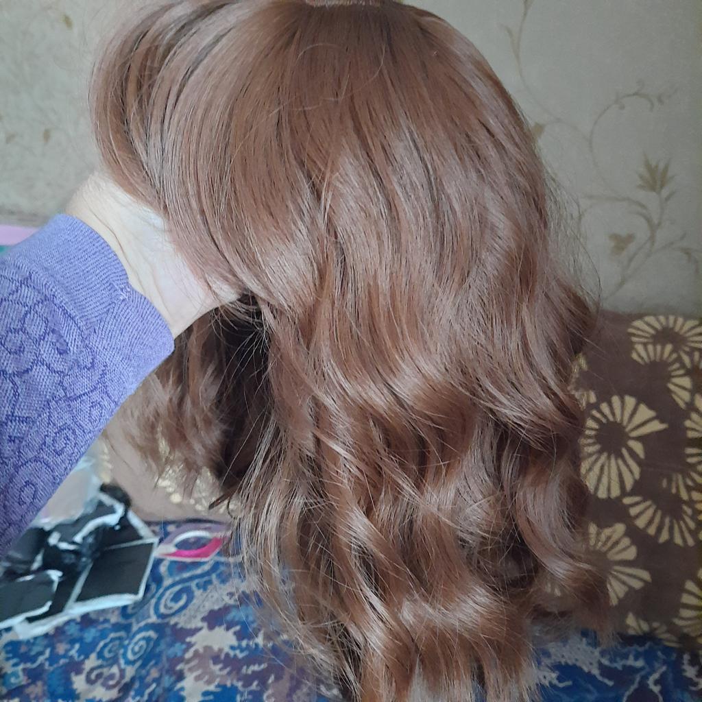 The wig is light brown in color, has a doll-like shine, it is the second one, number 4/20.