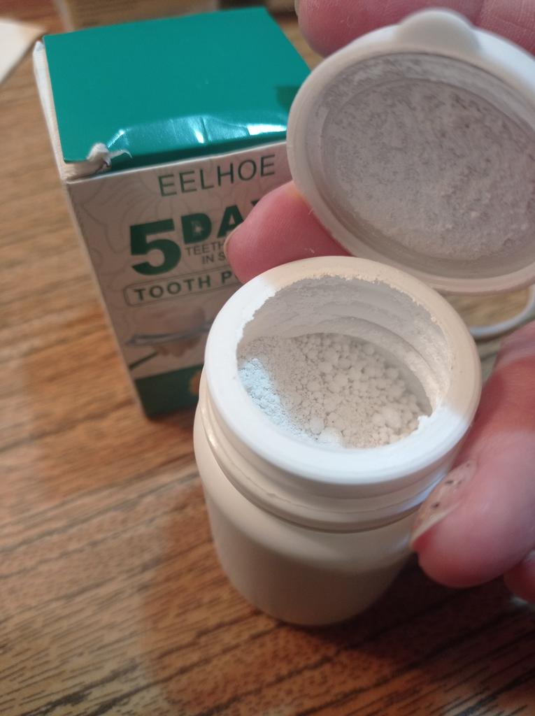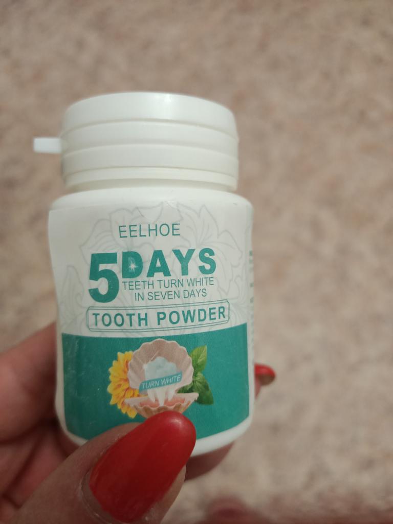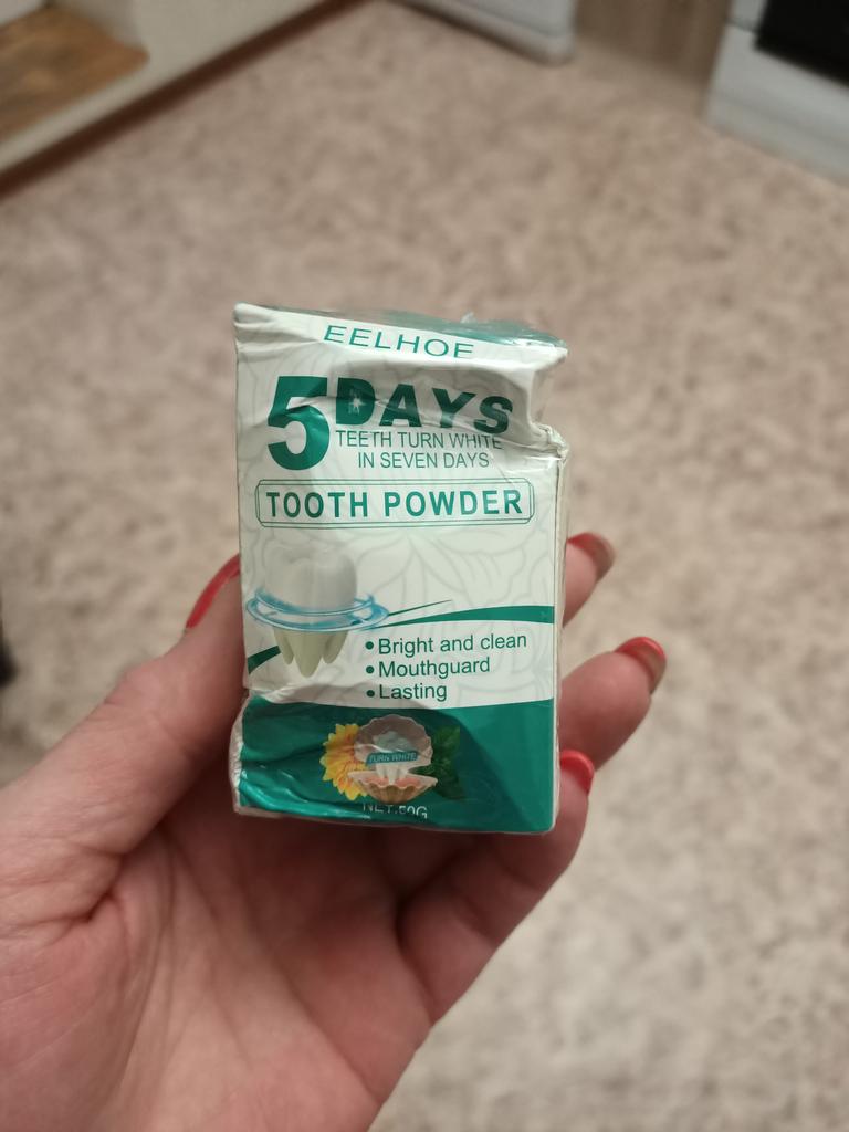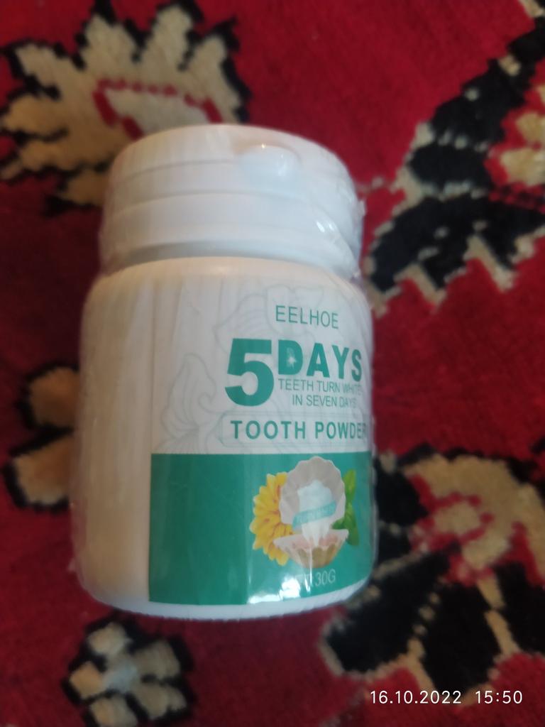 Received whitening tooth powder in 5 days. Received only yesterday, so only one day has passed. It's too early to talk about the result, - and I didn't look too closely today.