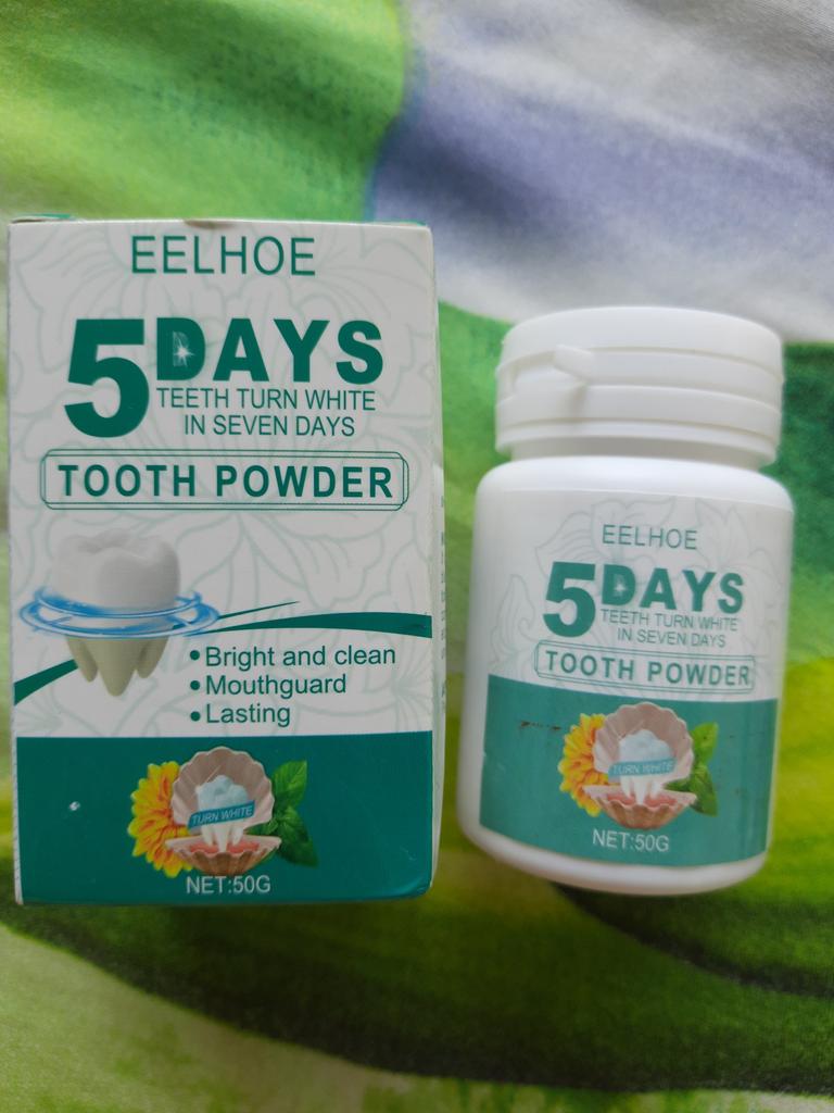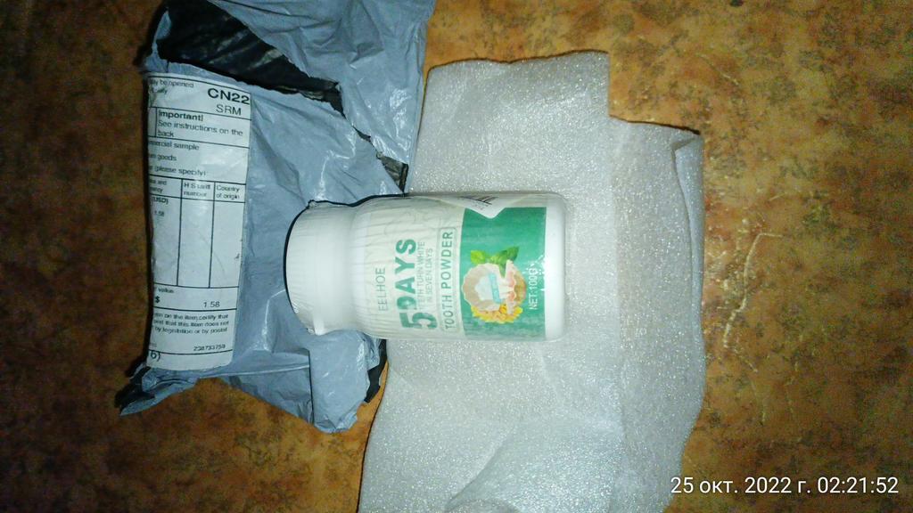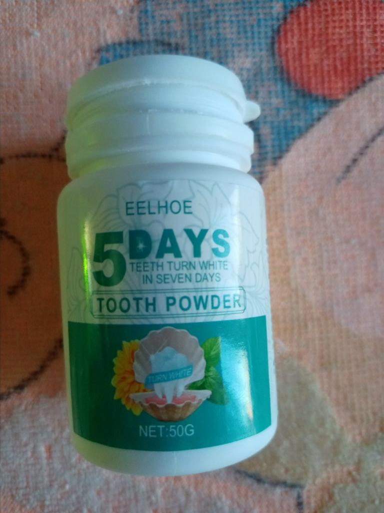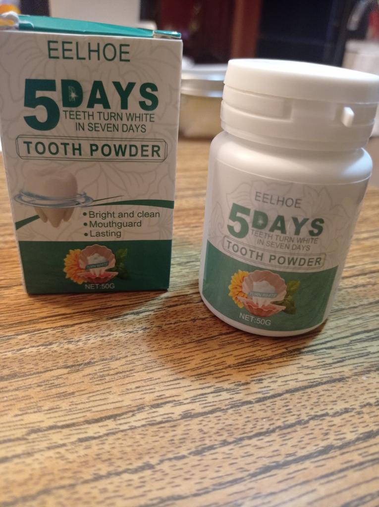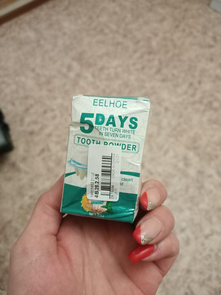 Received whitening tooth powder in 5 days. Received only yesterday, so only one day has passed. It's too early to talk about the result, - and I didn't look too closely today.