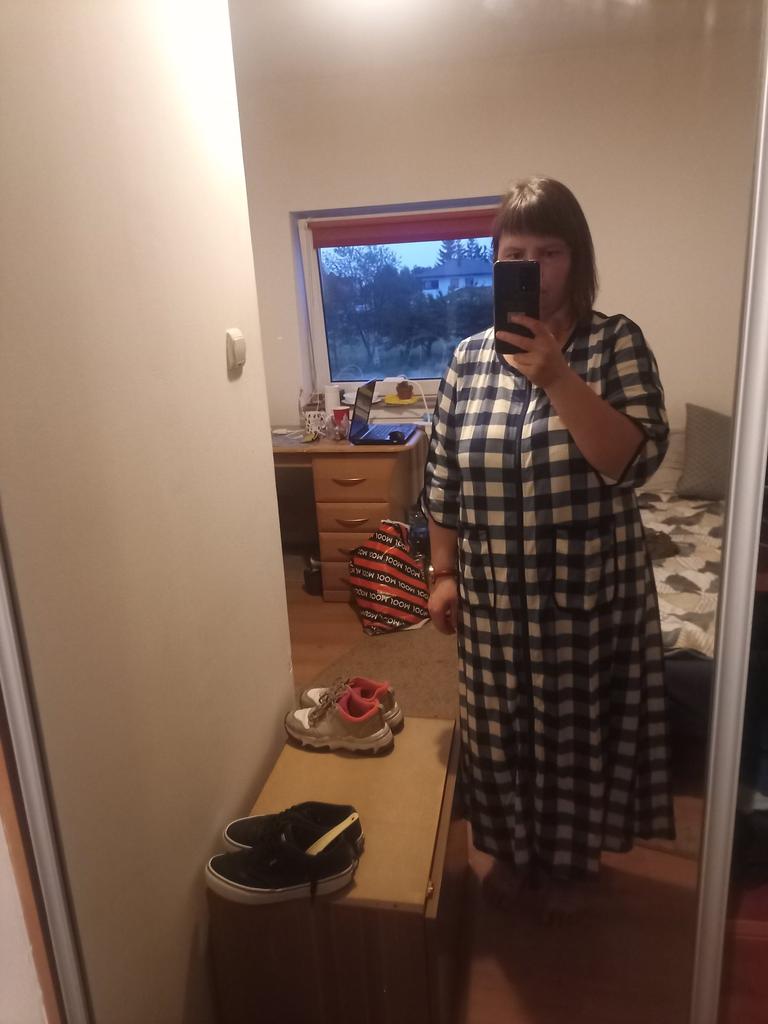 A very nice, comfortable robe for the spring and autumn seasons. My size 52 fits size XL. Moderately free, as I wanted. I am satisfied with the product, I recommend it.