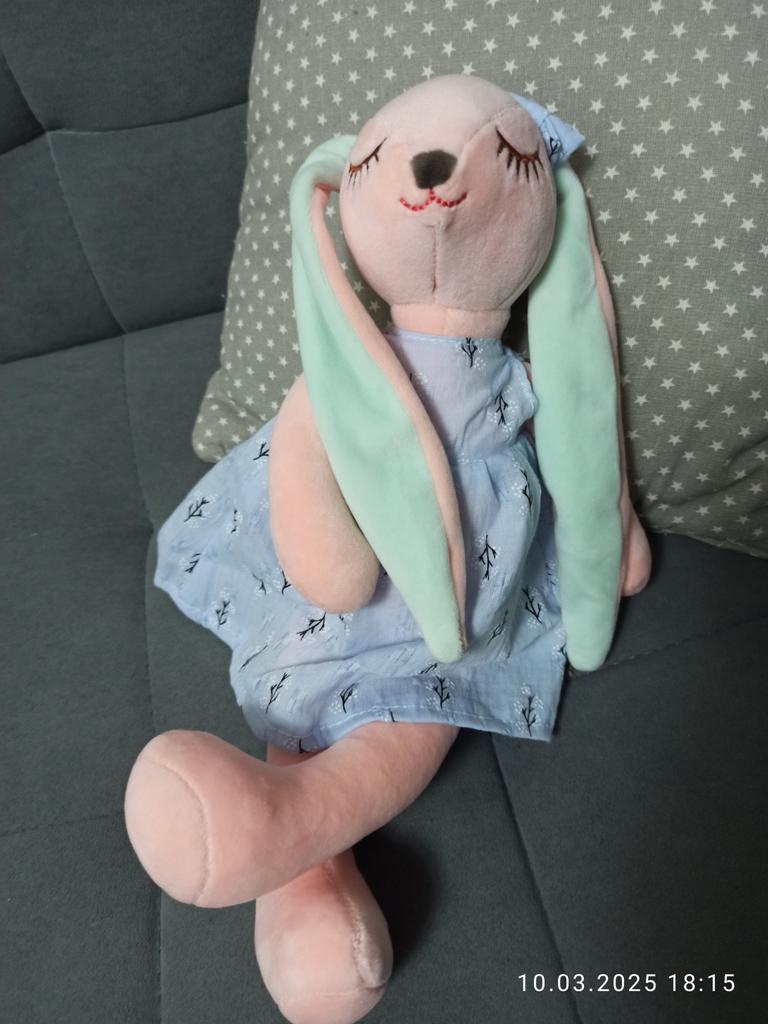 Wonderful bunny - pleasant to the touch fabric, made with high quality, delicate color. The skirt just needs to be ironed and there will be happiness for the granddaughter! I recommend it. Thank you!